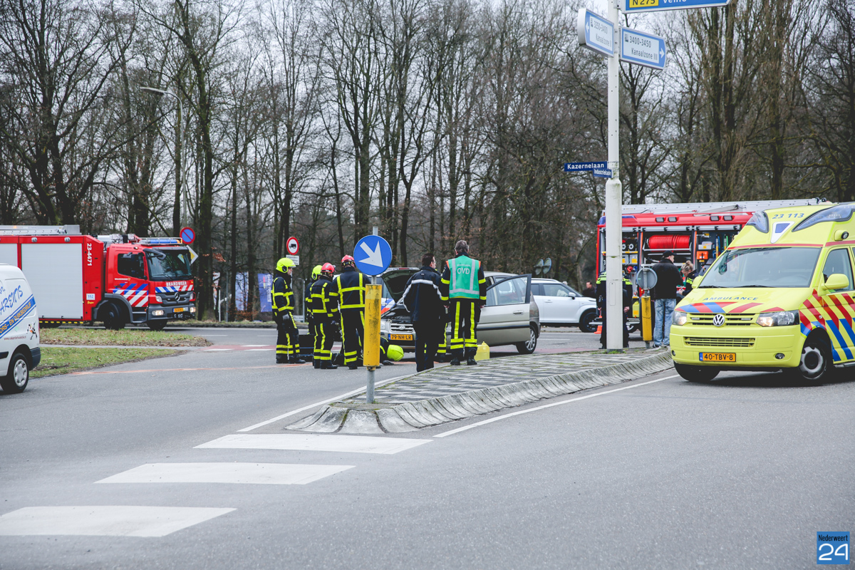 Zondagmiddag zijn twee auto’s met elkaar in botsing gekomen op de Kazernelaan ter hoogte van de kruising met de Industriekade.