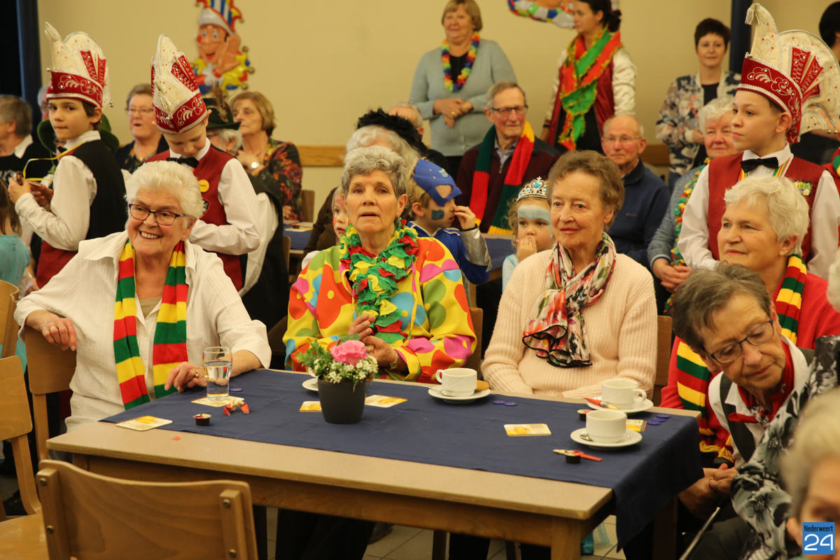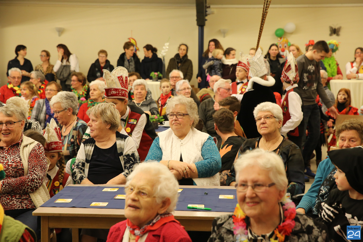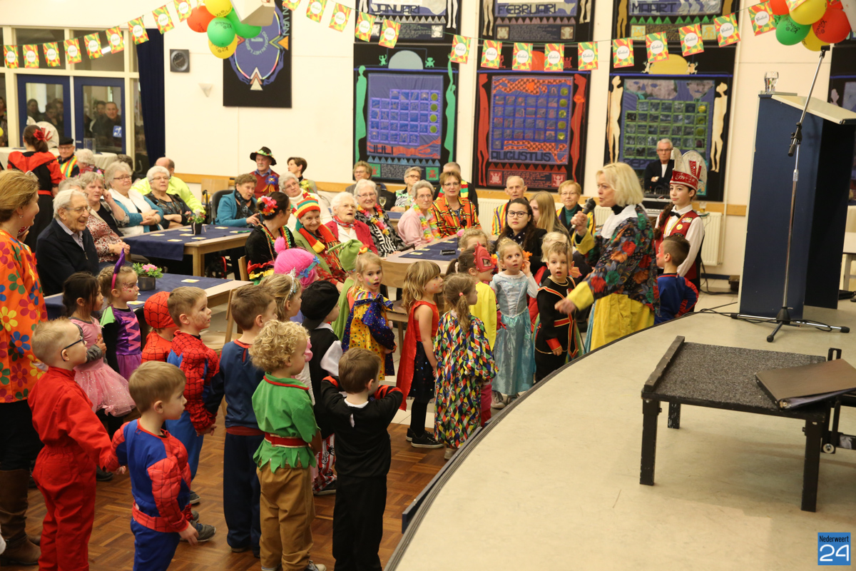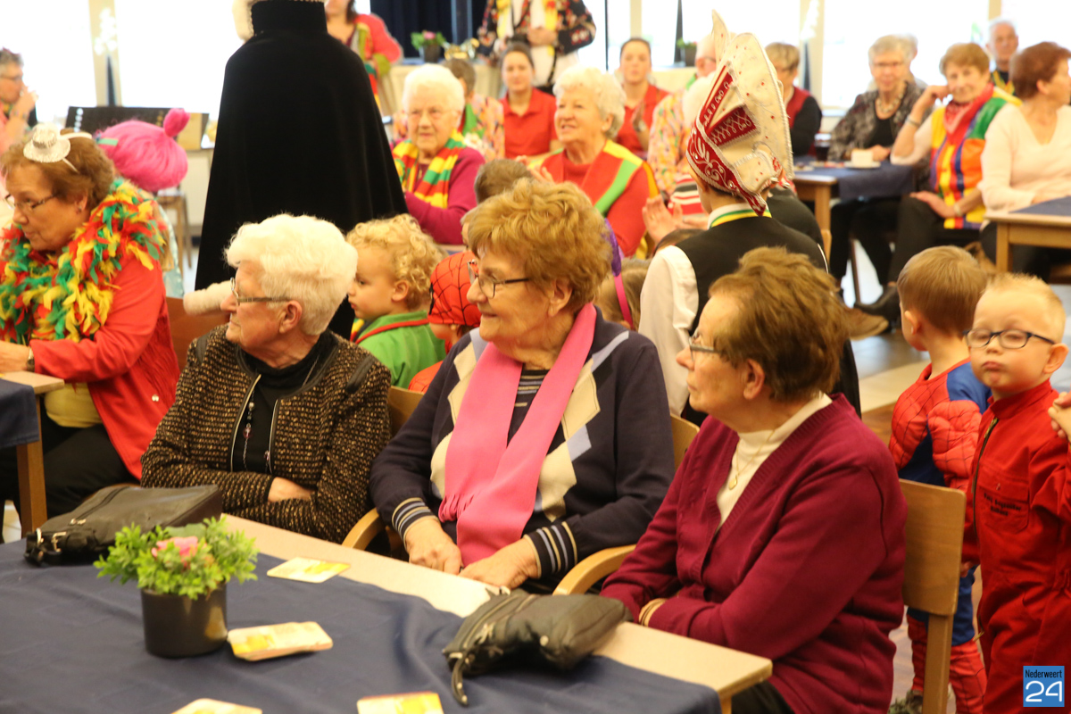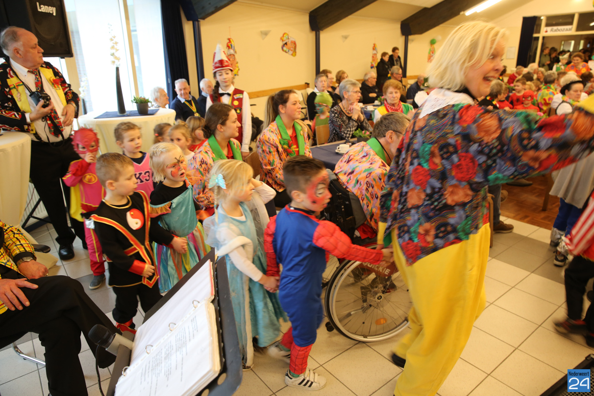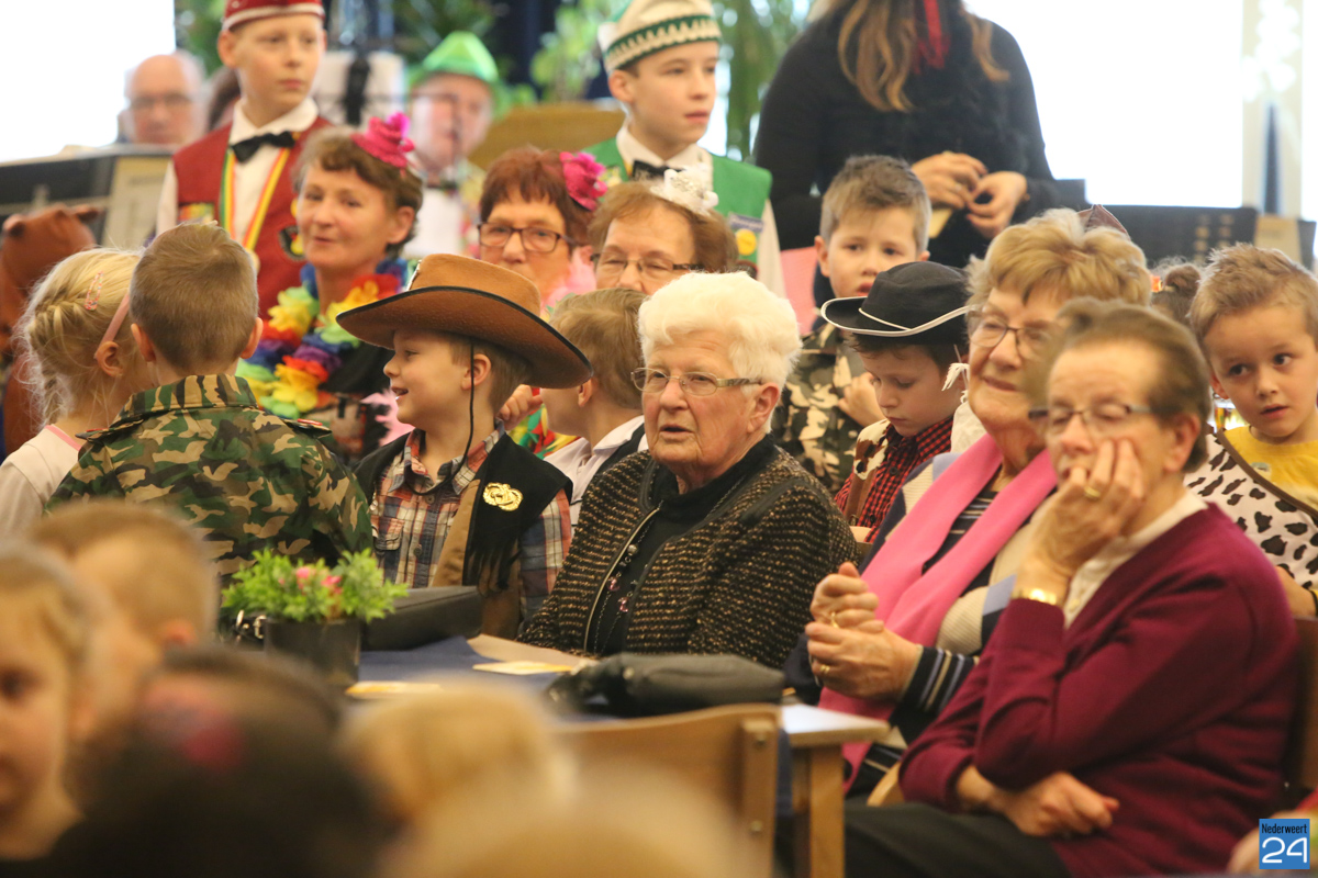 Behalve optredens van De Peelklanken uit Ospel en de Coconblazers uit Nederweert waren ook de jongste kids van Basisschool De Schrank even aanwezig om te zingen voor de ouderen. Vanzelfsprekend kwam iedereen in zijn mooiste en gekste carnavalspak.