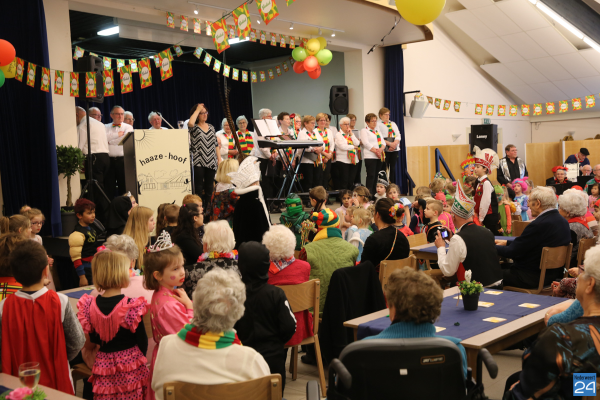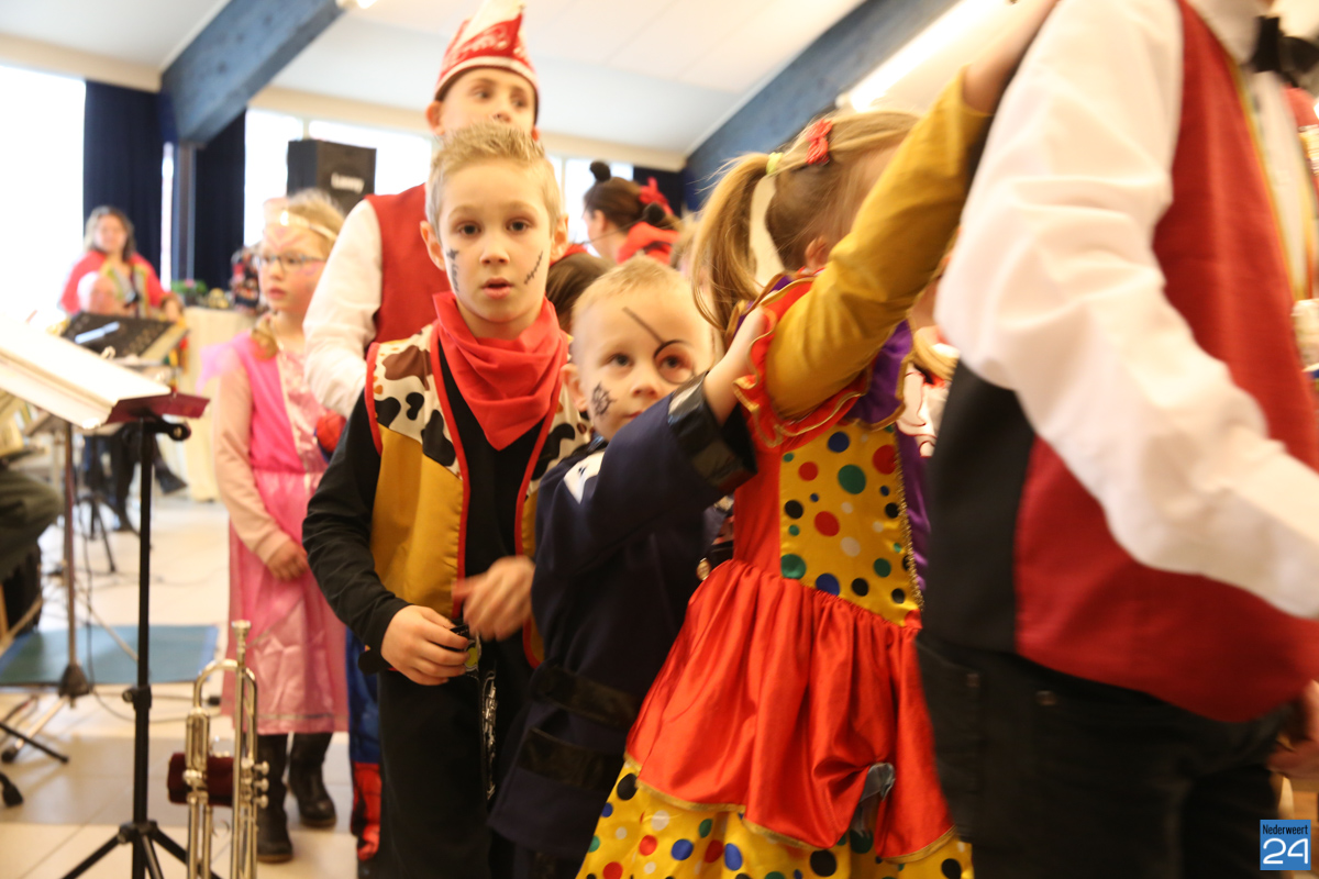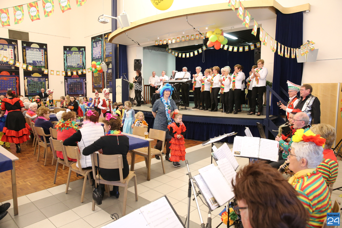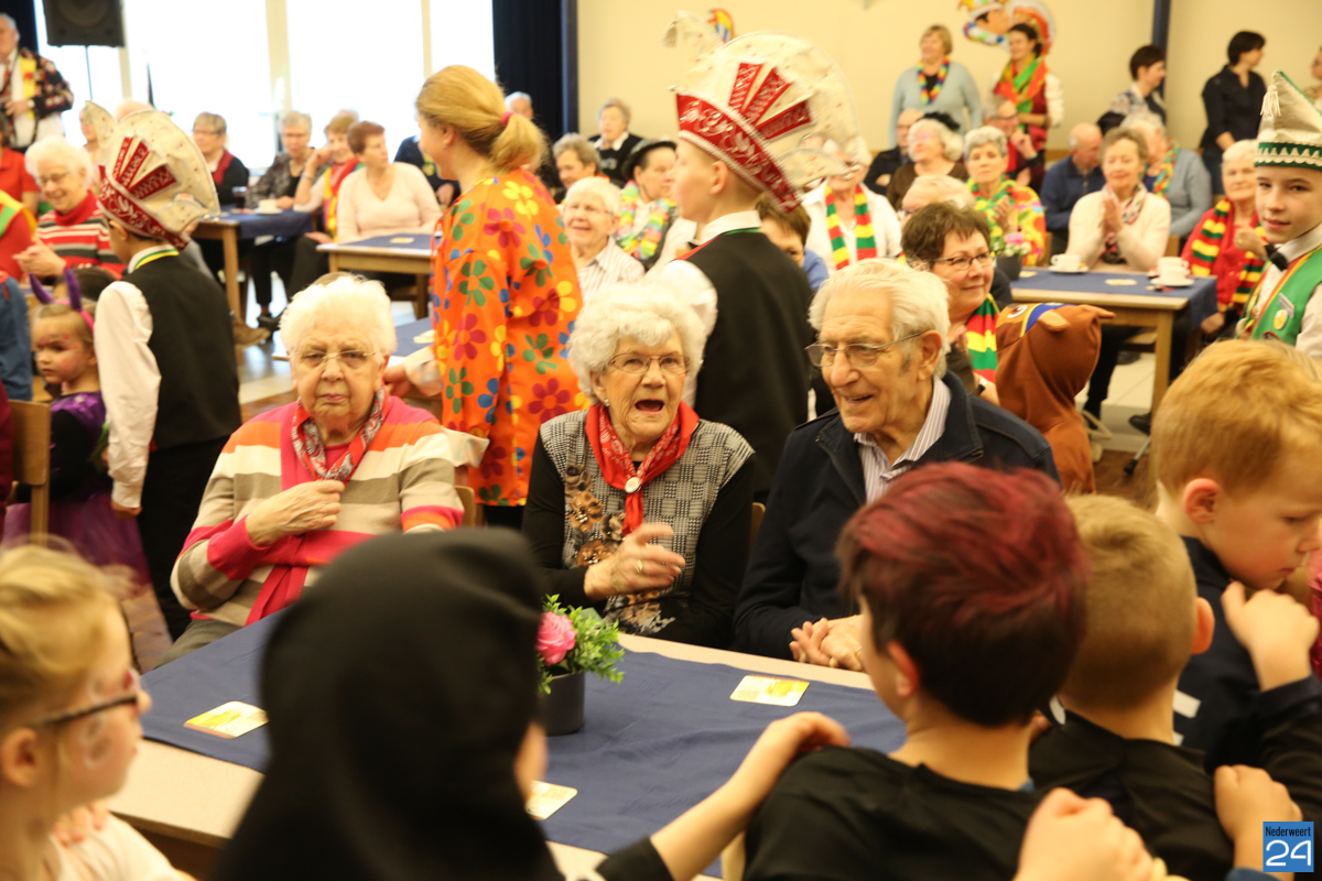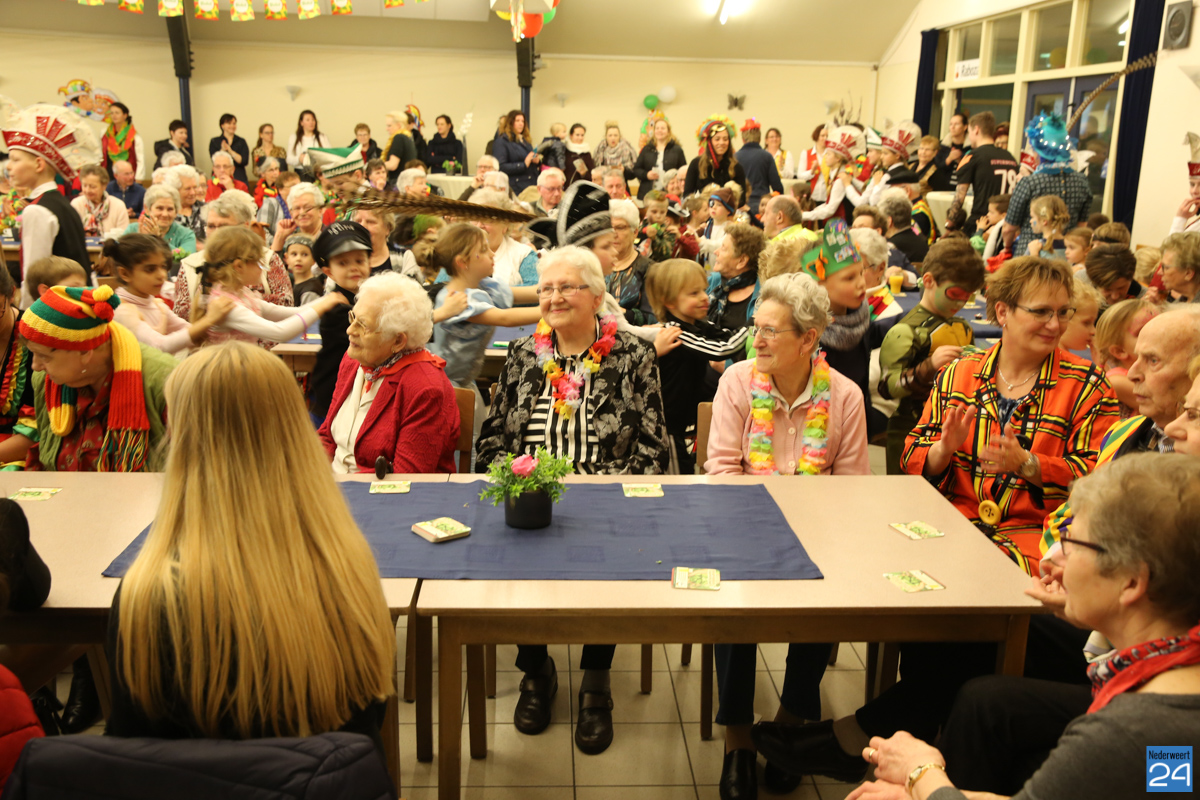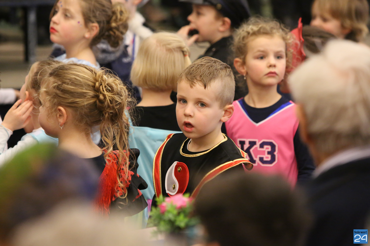 Behalve optredens van De Peelklanken uit Ospel en de Coconblazers uit Nederweert waren ook de jongste kids van Basisschool De Schrank even aanwezig om te zingen voor de ouderen. Vanzelfsprekend kwam iedereen in zijn mooiste en gekste carnavalspak.