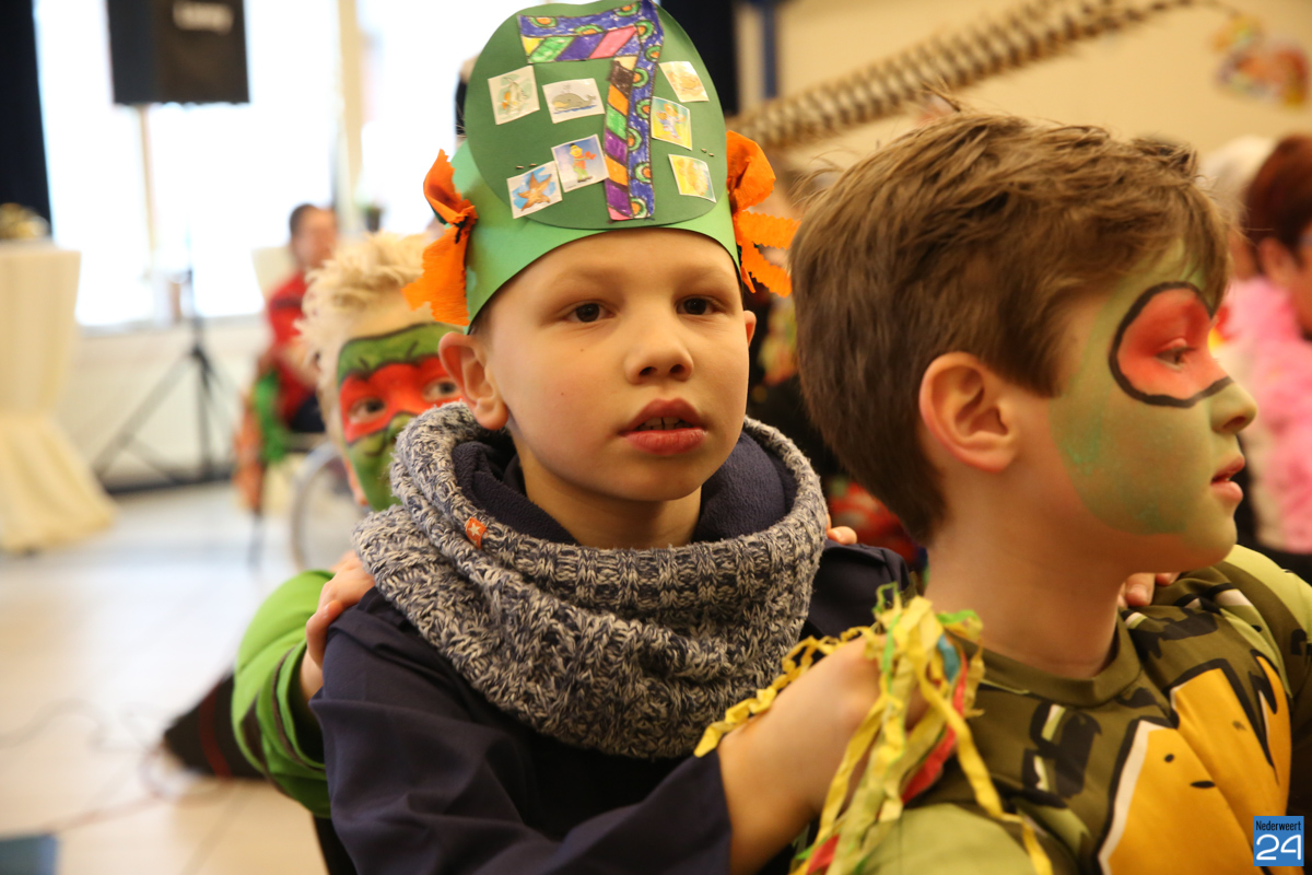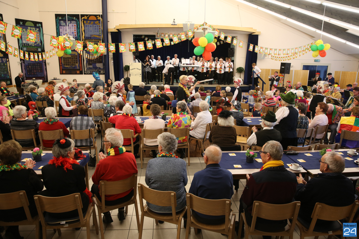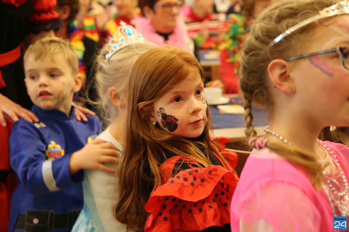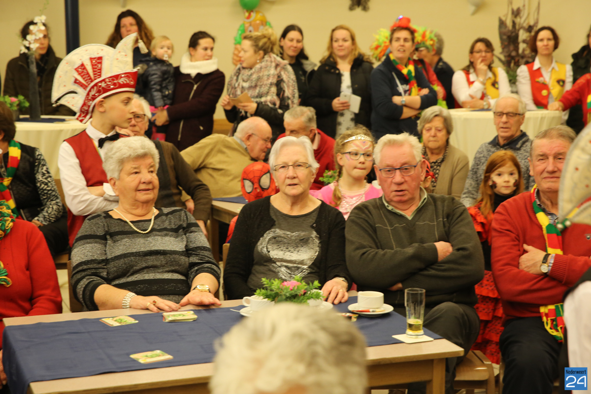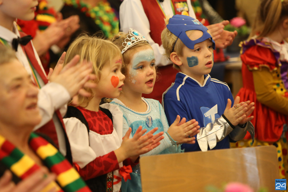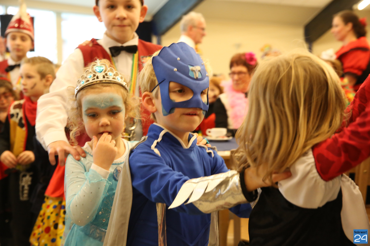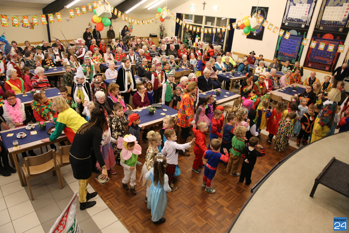 Behalve optredens van De Peelklanken uit Ospel en de Coconblazers uit Nederweert waren ook de jongste kids van Basisschool De Schrank even aanwezig om te zingen voor de ouderen. Vanzelfsprekend kwam iedereen in zijn mooiste en gekste carnavalspak.