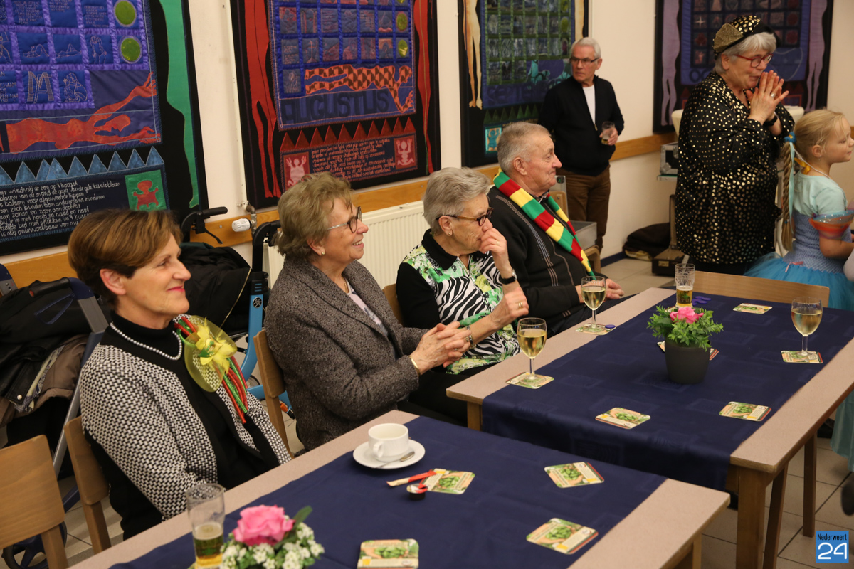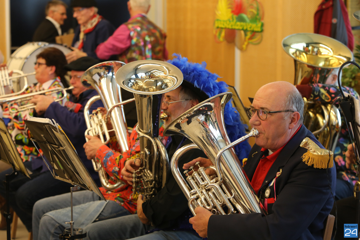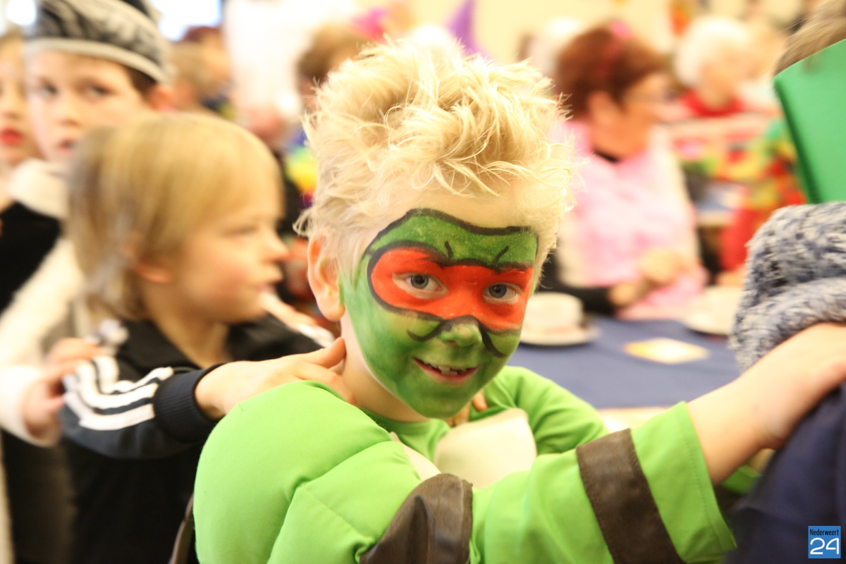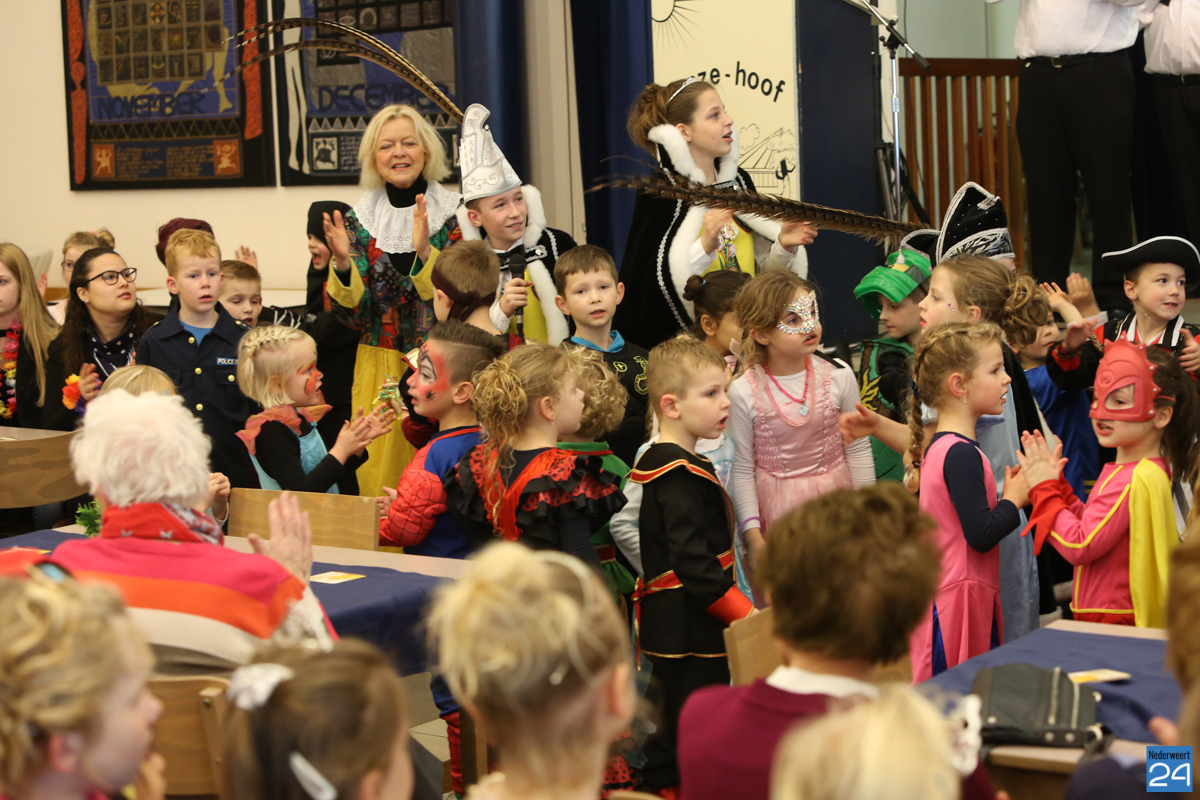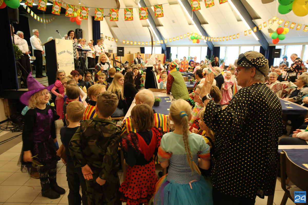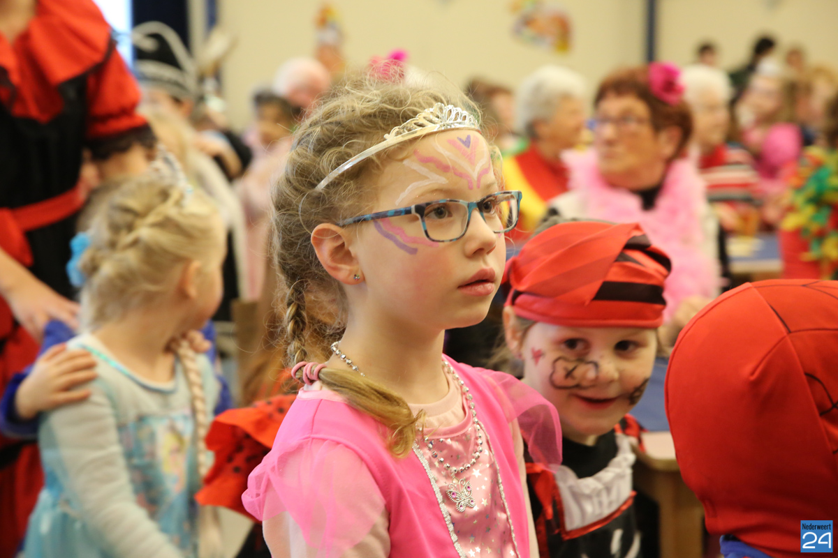 Behalve optredens van De Peelklanken uit Ospel en de Coconblazers uit Nederweert waren ook de jongste kids van Basisschool De Schrank even aanwezig om te zingen voor de ouderen. Vanzelfsprekend kwam iedereen in zijn mooiste en gekste carnavalspak.