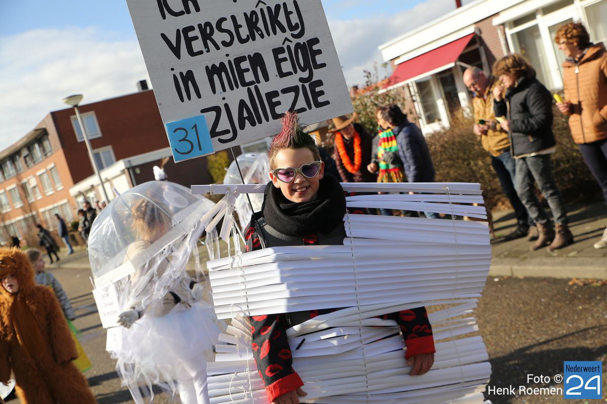 De kinderen genoten zichtbaar, omdat ze eindelijk hun mooie creaties aan het toegestroomde publiek mochten laten zien. Het was redelijk goed en dus waren er vele papa’s en mama’s, opa’s en oma’s en andere familieleden toegestroomd om de optocht met verschillende kleurrijke wagens en groepen te aanschouwen.