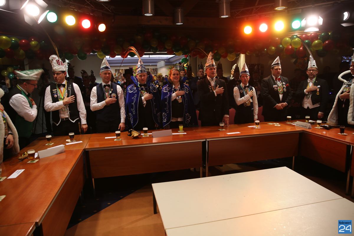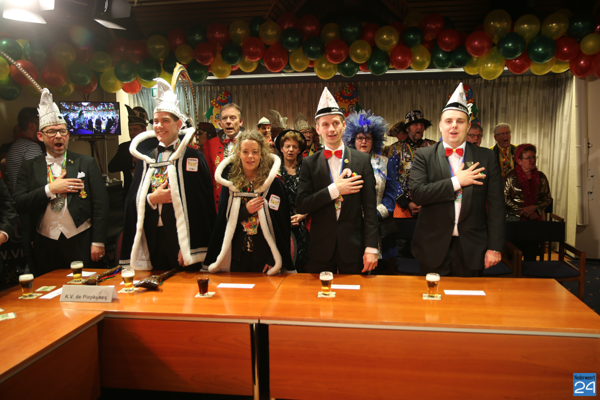 Zaterdagavond kwamen De Bengels, De Piepkukes, De Pinmaekers en De Vlikkestaekers met hun gevolg naar de Kolderzaal van het gemeentehuis in Nederweert om gezamenlijk de “Vastelaovendj” te openen. Na een kort woord van ceremoniemeester Giel Bruijnaers sprak Opperpin Henk Evers de aanwezigen toe en werd, ook al was het voor sommige moeilijk, één complet van het Limburgs volkslied gezongen.