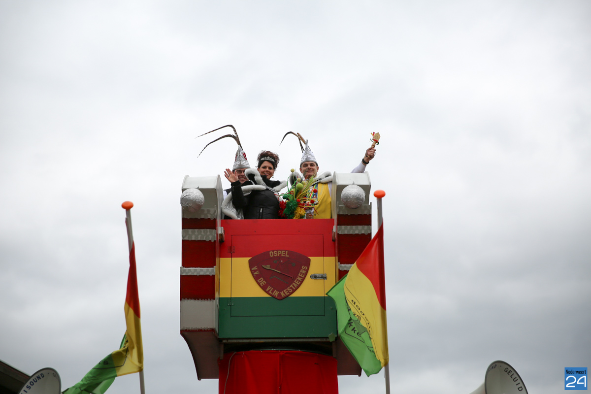 Maandagmiddag om 13.00 uur trok de grote, bonte stoet van deelnemers weer door de straten van Ospel. Iedereen had enorm zijn best gedaan en alles uit de kast getrokken om het publiek te vermaken.