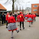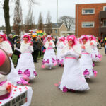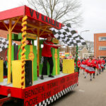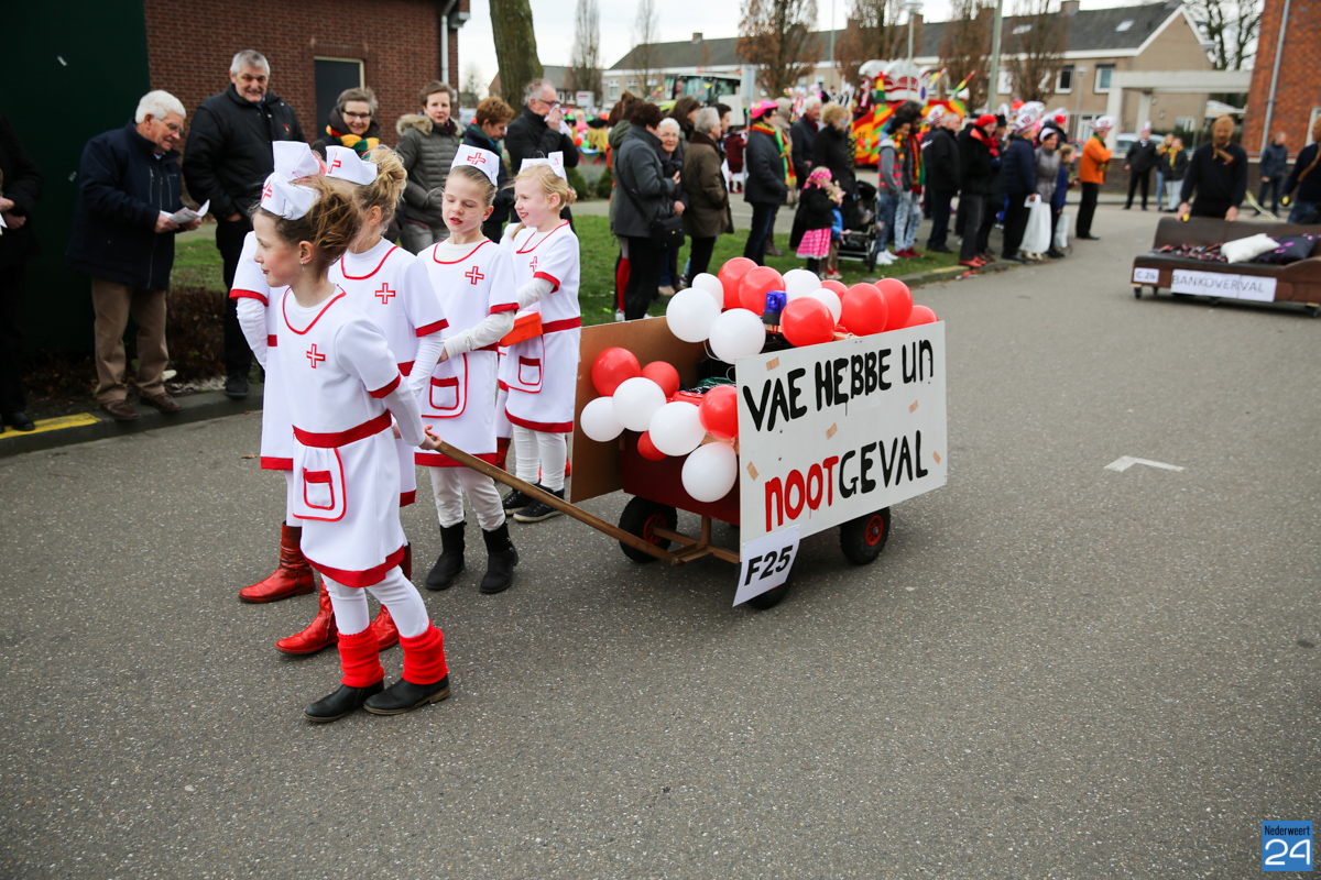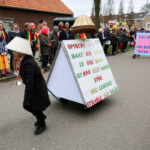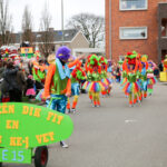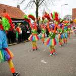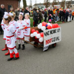 Ondanks de voorspellingen van regen wind en hagel was het rond 13:00 uur nog goed te doen. Het weerhield de 41 deelnemers er niet van om een prachtige en energieke optocht te presenteren aan het massaal toegestroomde publiek.
