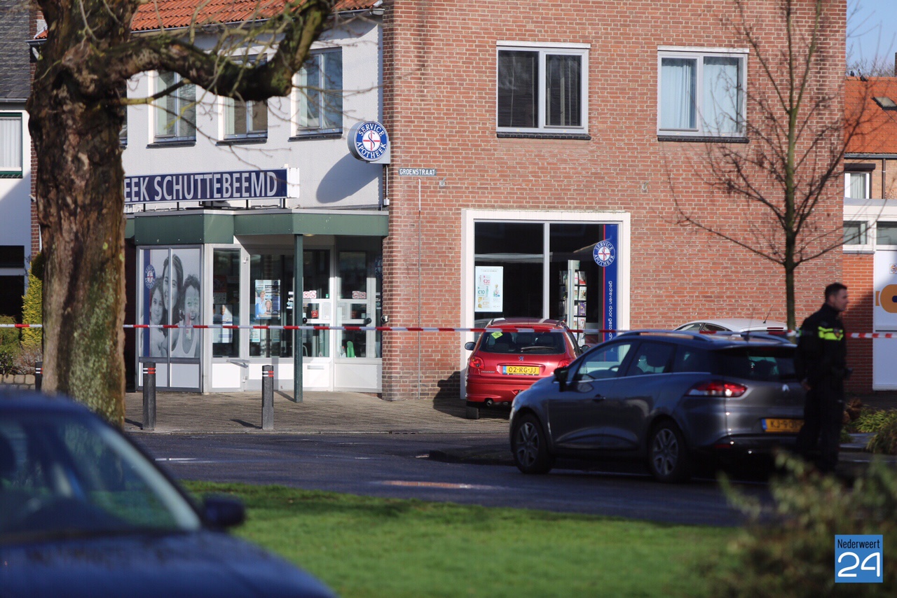 Een man met een automatisch vuurwapen is woensdagochtend bij apotheek Schuttenbeemd in Weert naar binnen gelopen. Het personeel en de aanwezige klanten hebben het pand ongedeerd kunnen verlaten.