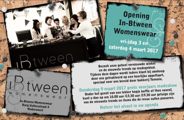 Na een paar dagen te zijn gesloten zijn we nu eindelijk helemaal klaar met de verbouwing van In-btween Womenswear, gevestigd aan, Burgemeester Vullersstraat 4 in Nederweert. “We zijn heel erg blij en trots tegelijk met het uiteindelijke resultaat” aldus het team van In-btween. Zoals reeds eerder aangegeven gaan vrijdag 3 en zaterdag 4 maart de deuren weer open. Het is een moment om niet zomaar voorbij te laten gaan en dat doen ze dan ook zeer zeker niet. Ze willen er een feestelijk tintje aan geven en doen dit op deze twee genoemde dagen.