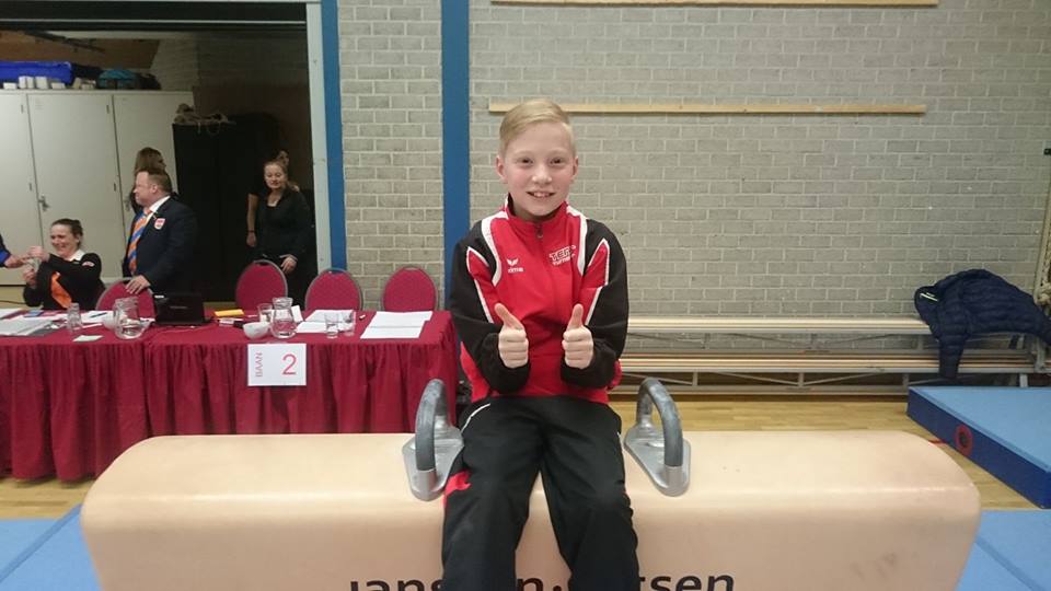 Frederik Jansen turnde zaterdag zijn allereerste NK wedstrijd. Hierdoor was het erg spannend en de gezonde zenuwen waren dan ook volop aanwezig. Fredrik heeft heel erg zijn best gedaan en sommige oefeningen gingen zelfs beter dan op de trainingen. Het turnveld was erg sterke bezet en hij kwam helaas op het einde punten tekort om door te kunnen gaan naar de kwartfinale. Fredrik gaat nu trainen aan moeilijkere elementen om zo volgend jaar nog hogere scores te kunnen halen.