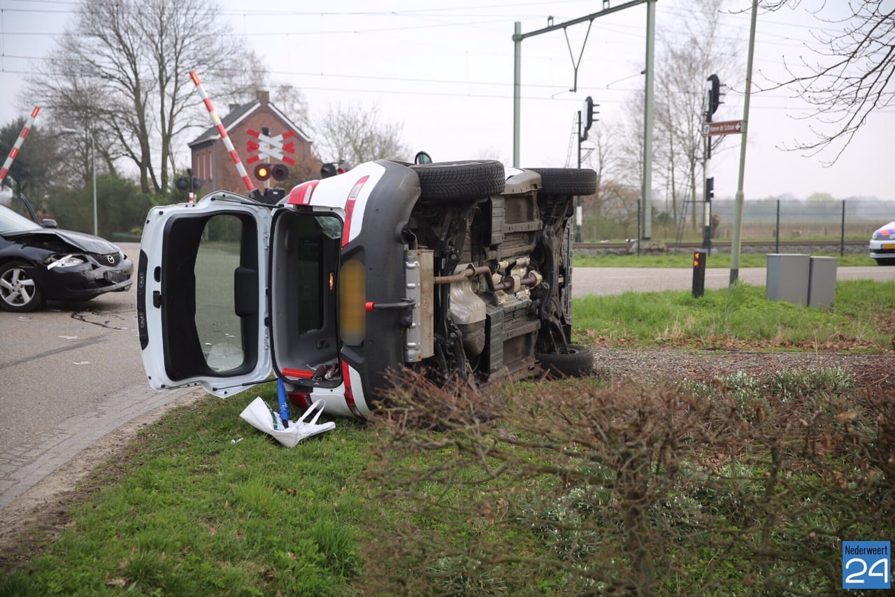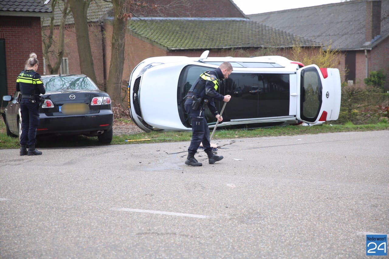 De bestuurster van de witte auto kwam vanaf de Schoorstraat en heeft de zwarte auto komende van rechts over het hoofd gezien. De zwarte auto reed vol in de flank waardoor de witte auto is gaan schuiven en op z’n kant in de berm tot stilstand is gekomen. Beide bestuurders zijn door ambulancepersoneel onderzocht, maar waren ongedeerd.