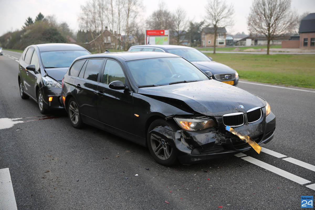 Vrijdagmorgen zijn drie voertuigen met elkaar in botsing gekomen op de N275 in Nederweert. Twee personenauto’s en een bestelbus reden vanuit Nederweert richting de rotonde bij Nederweert-Eind op het moment dat het achterste voertuig te laat zag dat de auto’s voor hem stil stonden.