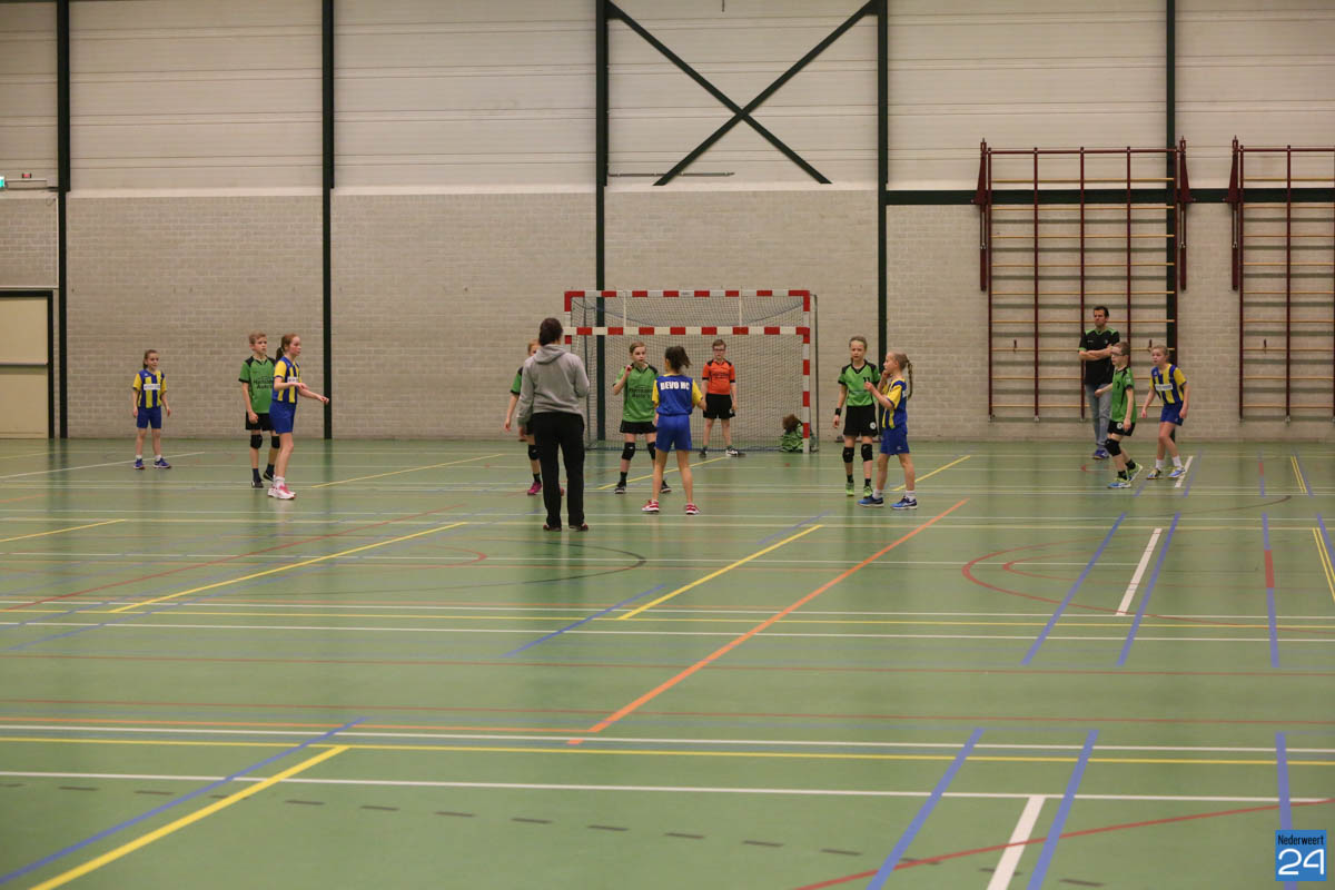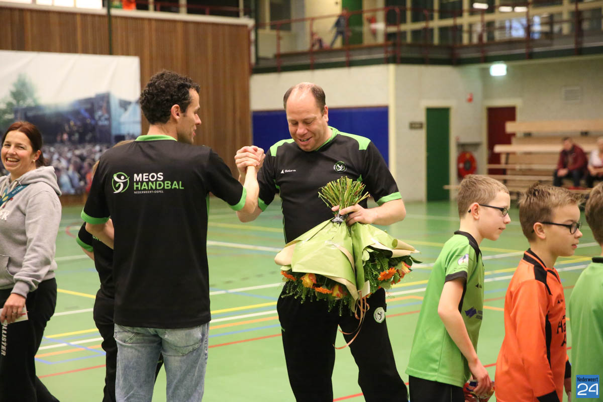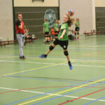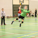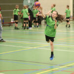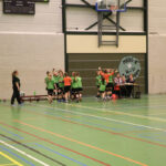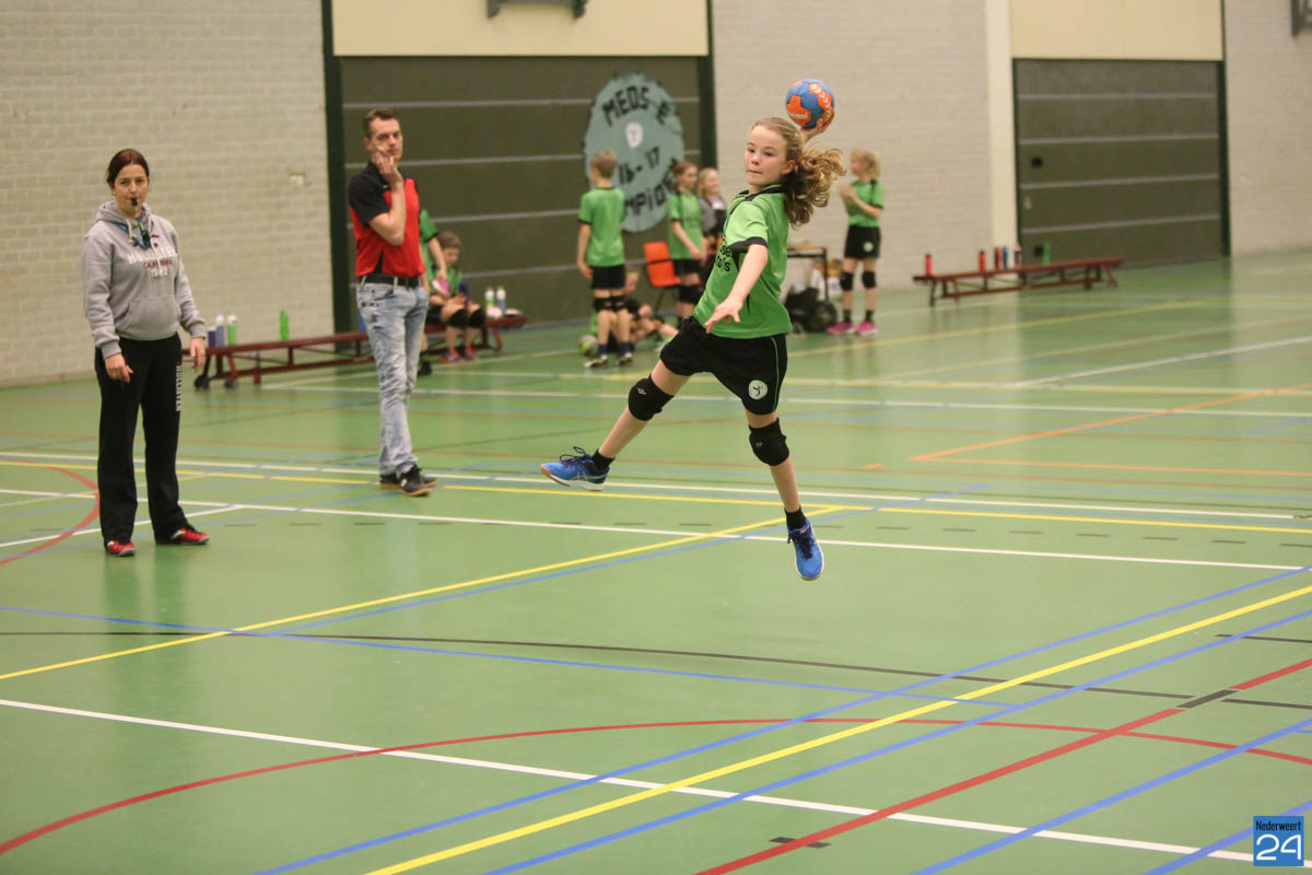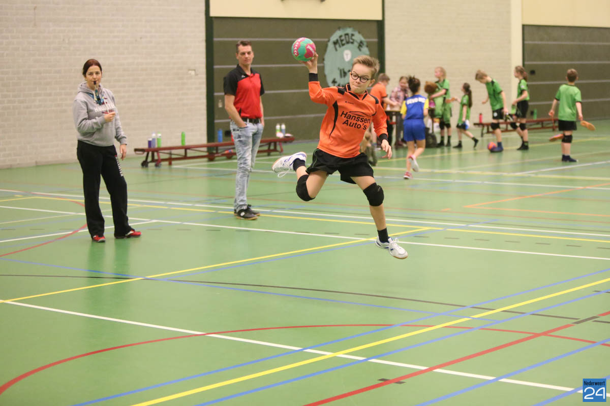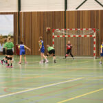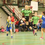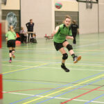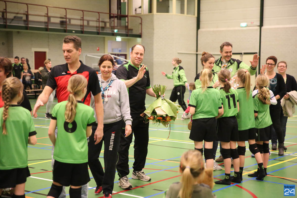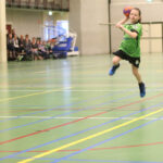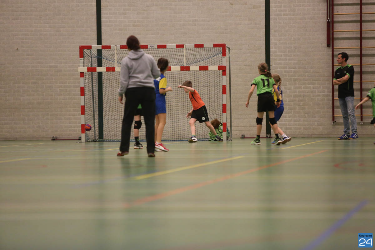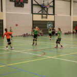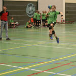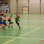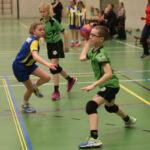 Met spandoeken aan de muur en een goed gevulde tribune ging de wedstrijd om 10.45 uur van start. Al gauw kwam MEOS op voorsprong; stand bij rust 8-1. De tweede helft verliep eveneens goed met als mooi eindresultaat 12-5. De kinderen speelde heel fanatiek en streden voor elke bal. Er waren mooie aanvallen te zien en even mooie reddingen door de keepers. Na het eindsignaal stak een groot gejuich op: MEOS E in zwart en groen, werd vandaag dik verdiend kampioen!