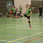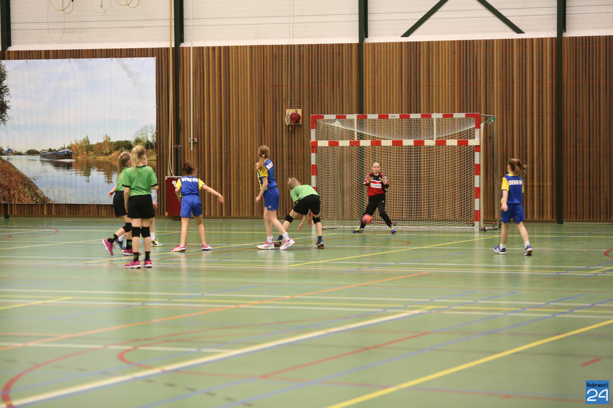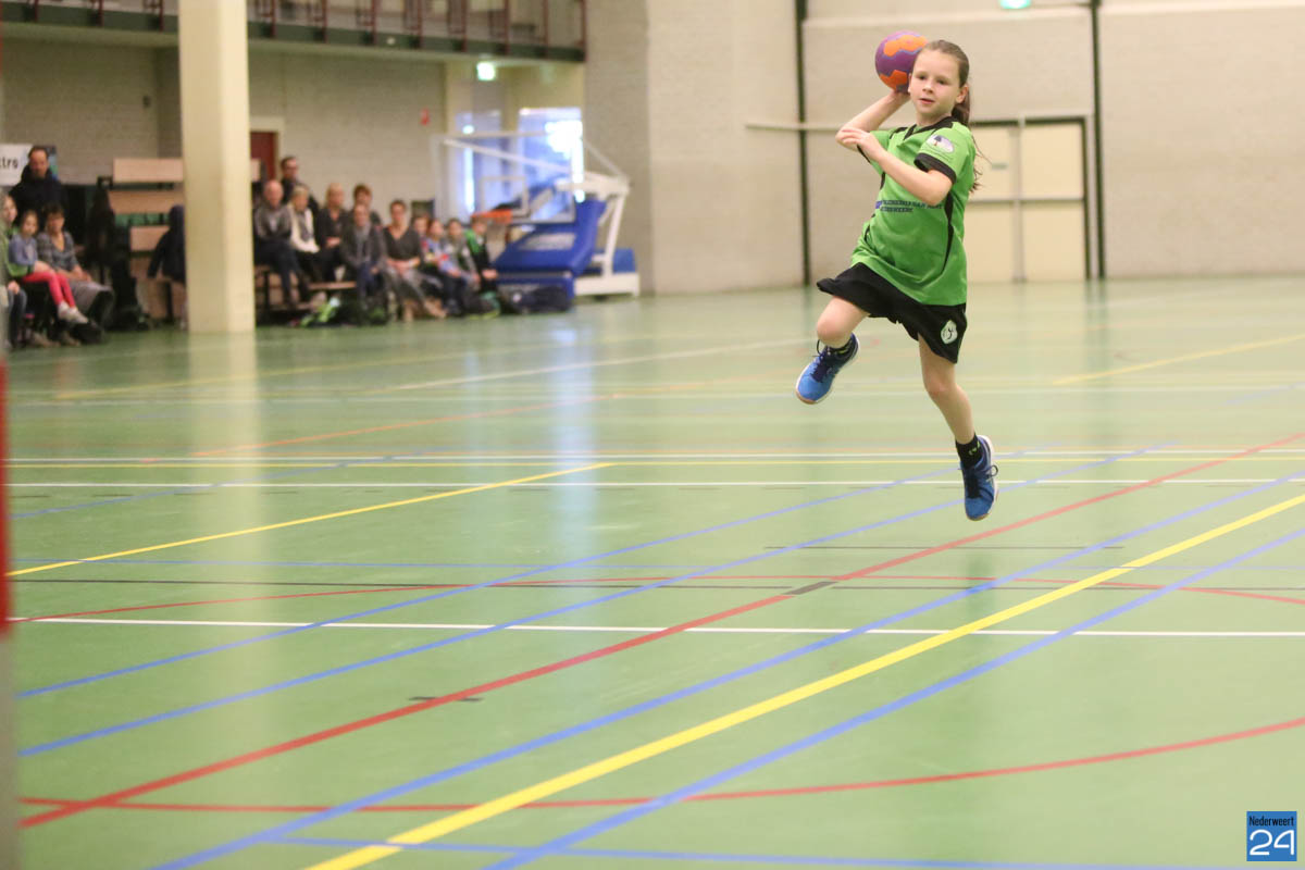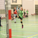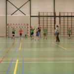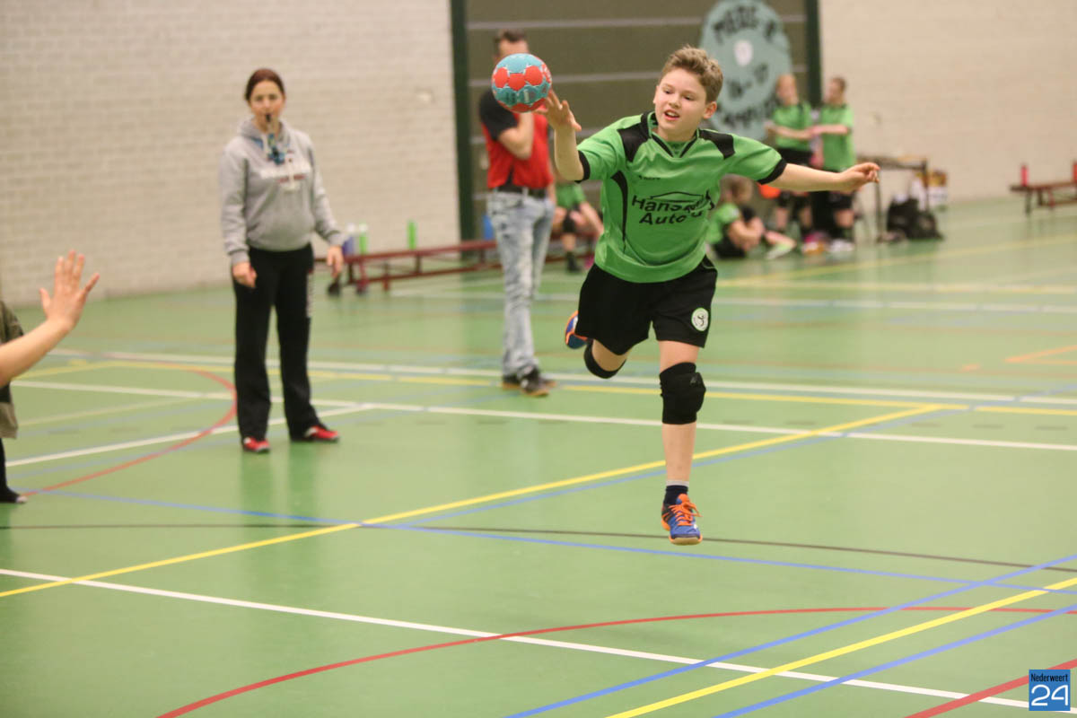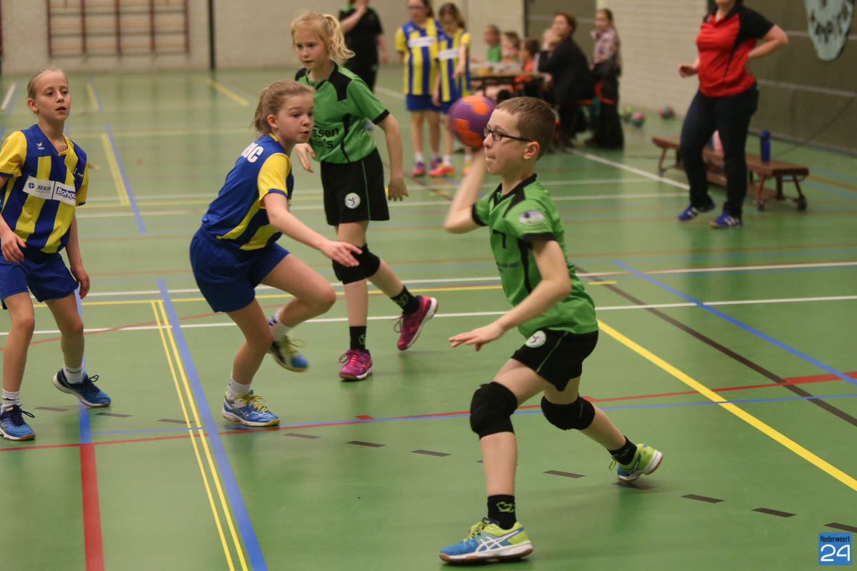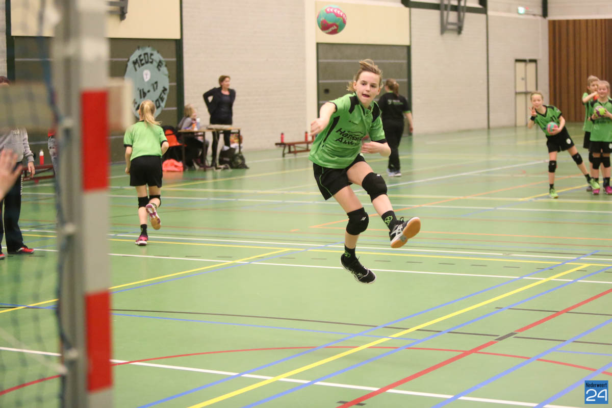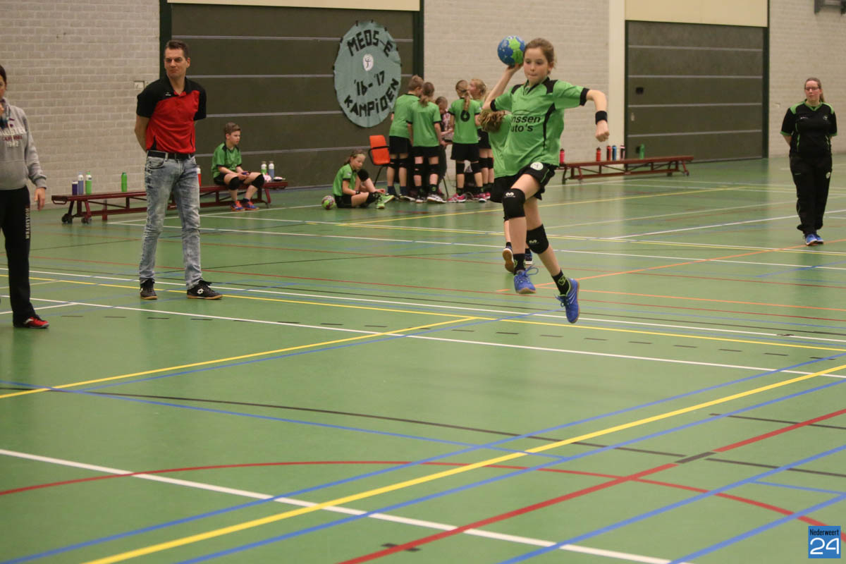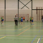 Met spandoeken aan de muur en een goed gevulde tribune ging de wedstrijd om 10.45 uur van start. Al gauw kwam MEOS op voorsprong; stand bij rust 8-1. De tweede helft verliep eveneens goed met als mooi eindresultaat 12-5. De kinderen speelde heel fanatiek en streden voor elke bal. Er waren mooie aanvallen te zien en even mooie reddingen door de keepers. Na het eindsignaal stak een groot gejuich op: MEOS E in zwart en groen, werd vandaag dik verdiend kampioen!