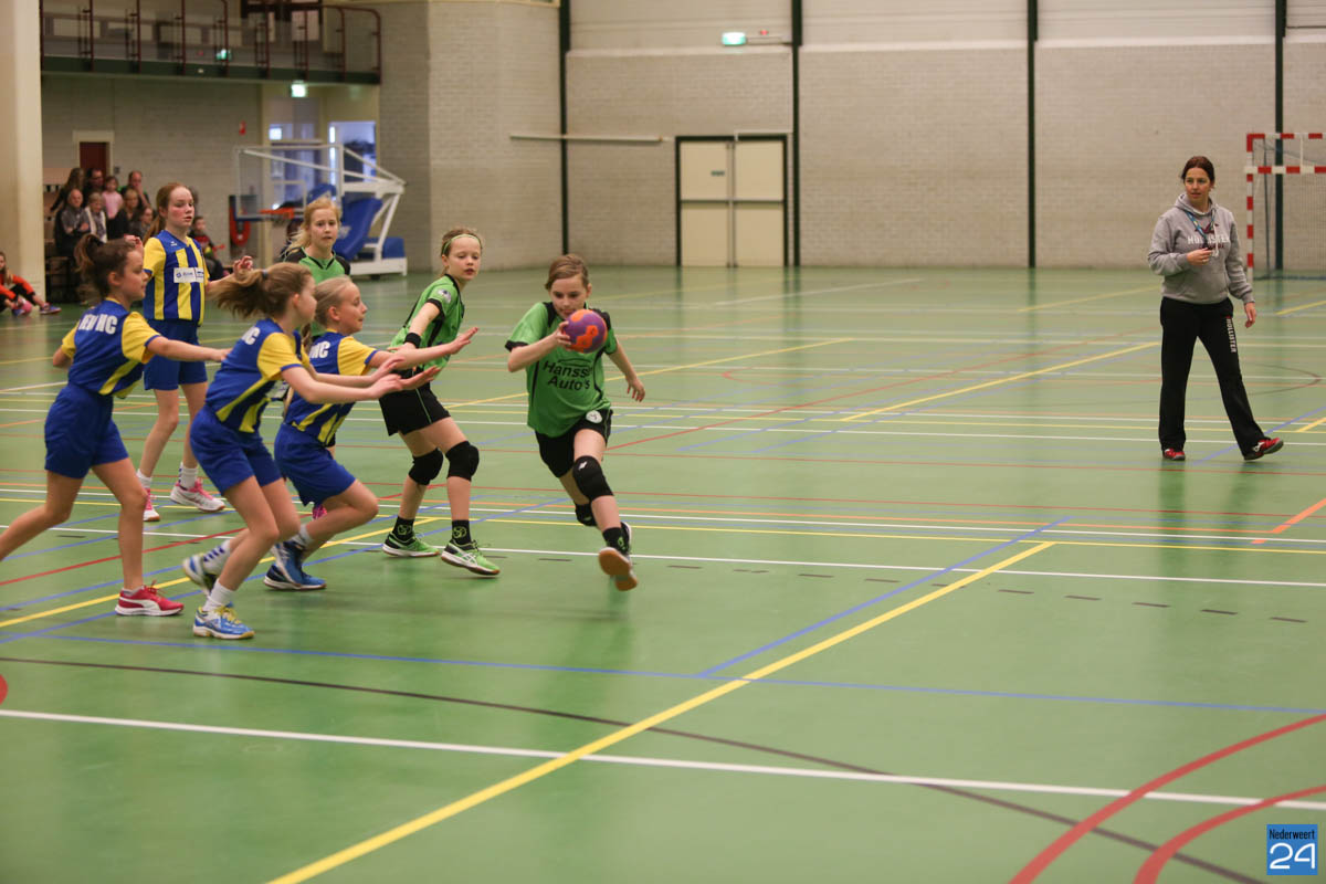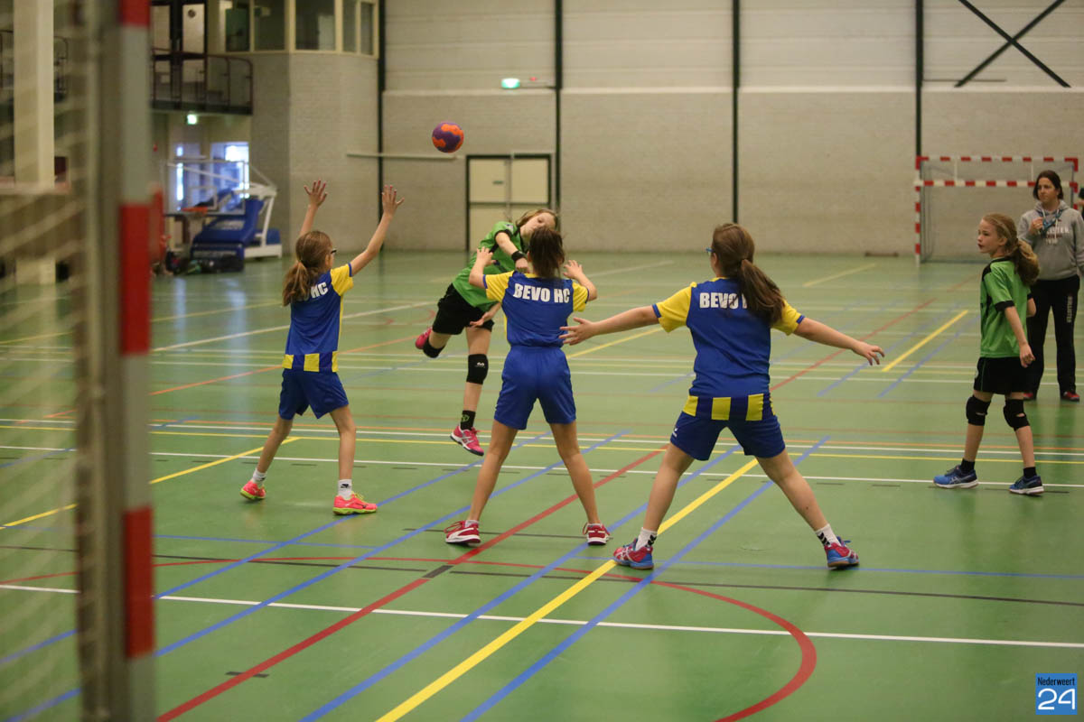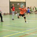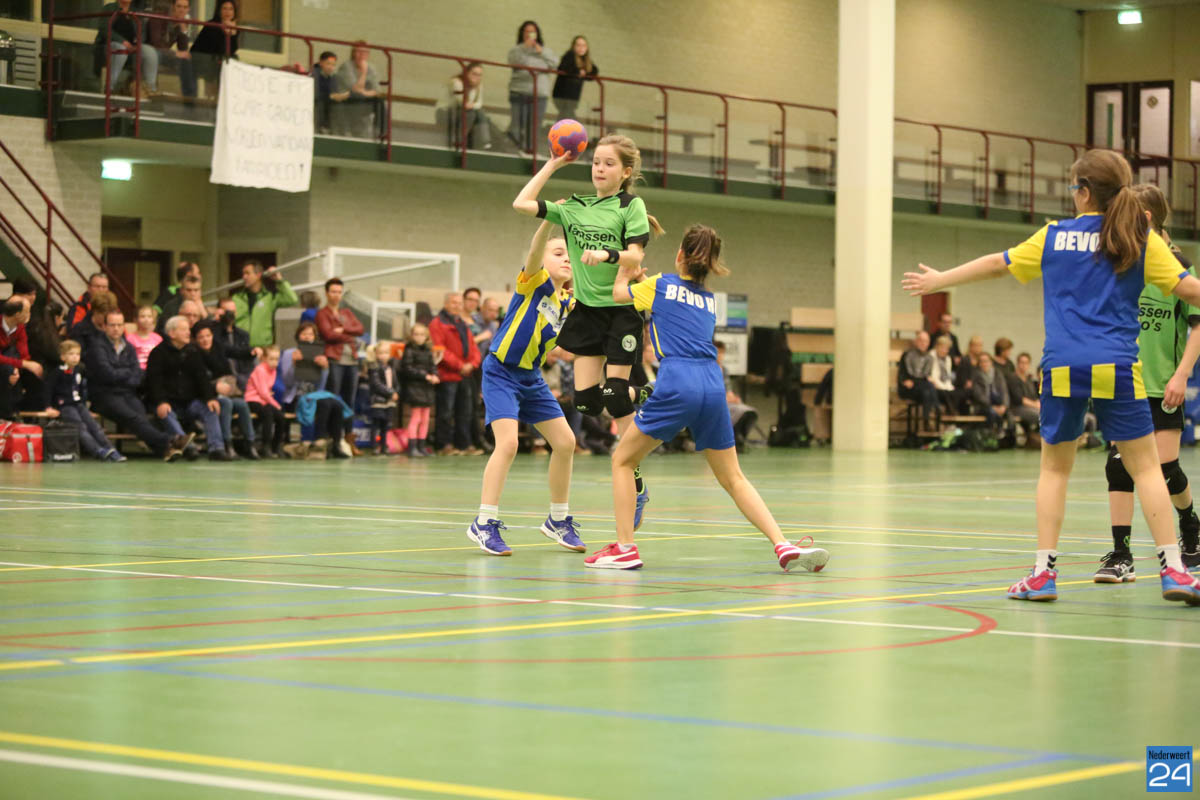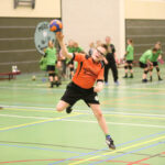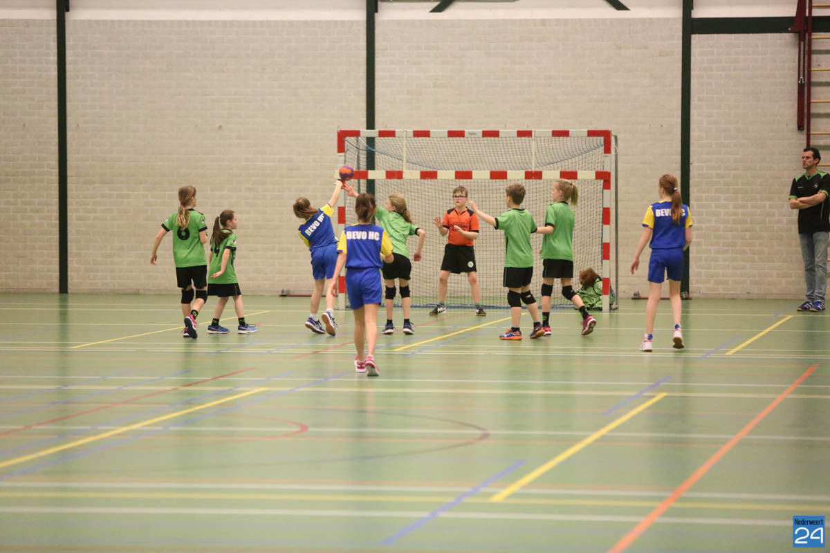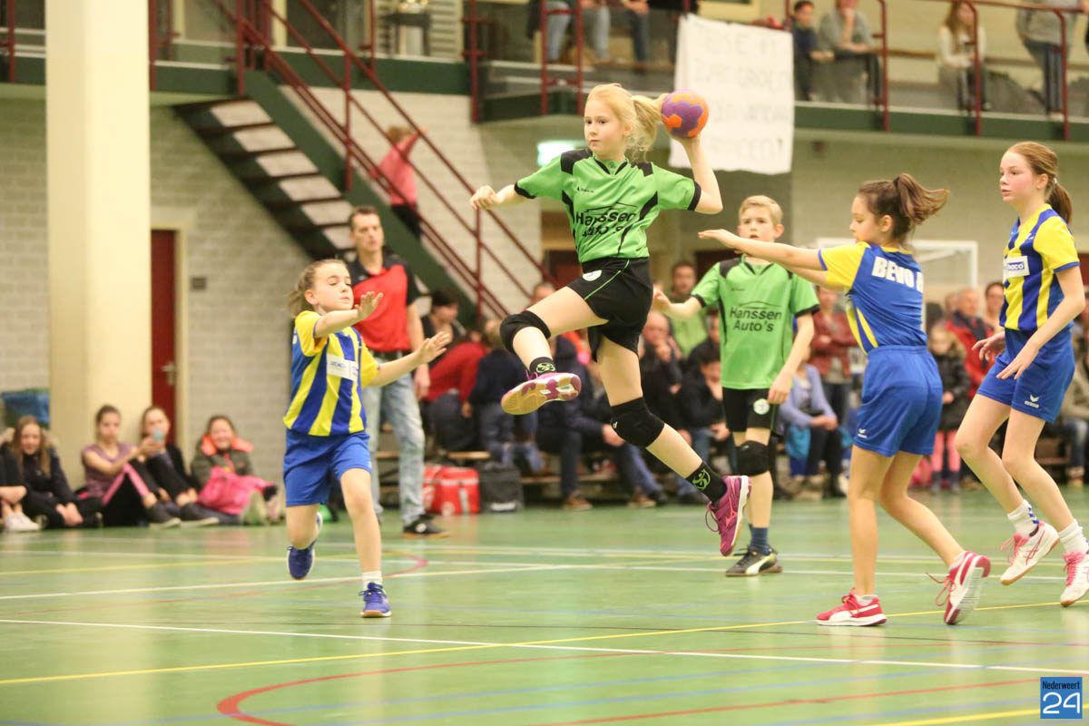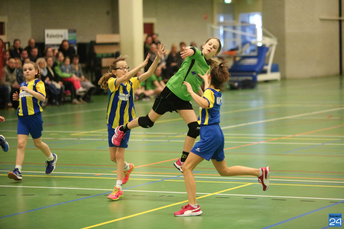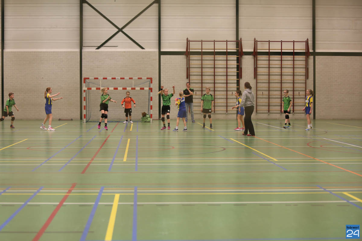 Met spandoeken aan de muur en een goed gevulde tribune ging de wedstrijd om 10.45 uur van start. Al gauw kwam MEOS op voorsprong; stand bij rust 8-1. De tweede helft verliep eveneens goed met als mooi eindresultaat 12-5. De kinderen speelde heel fanatiek en streden voor elke bal. Er waren mooie aanvallen te zien en even mooie reddingen door de keepers. Na het eindsignaal stak een groot gejuich op: MEOS E in zwart en groen, werd vandaag dik verdiend kampioen!
