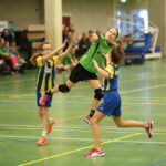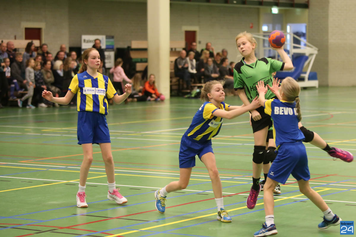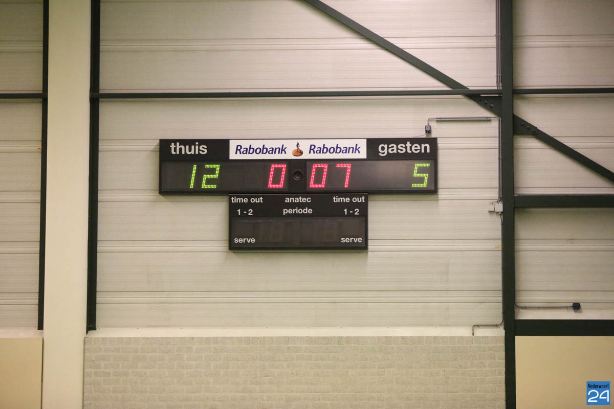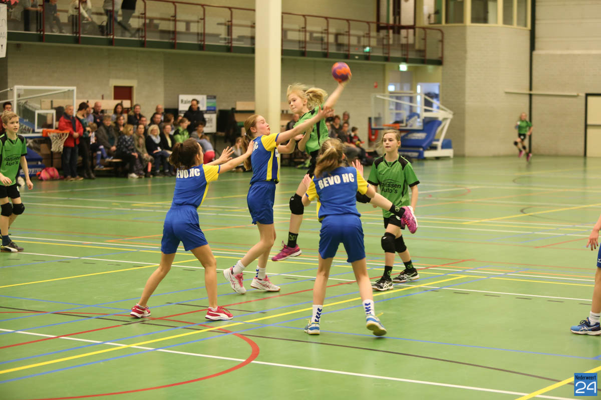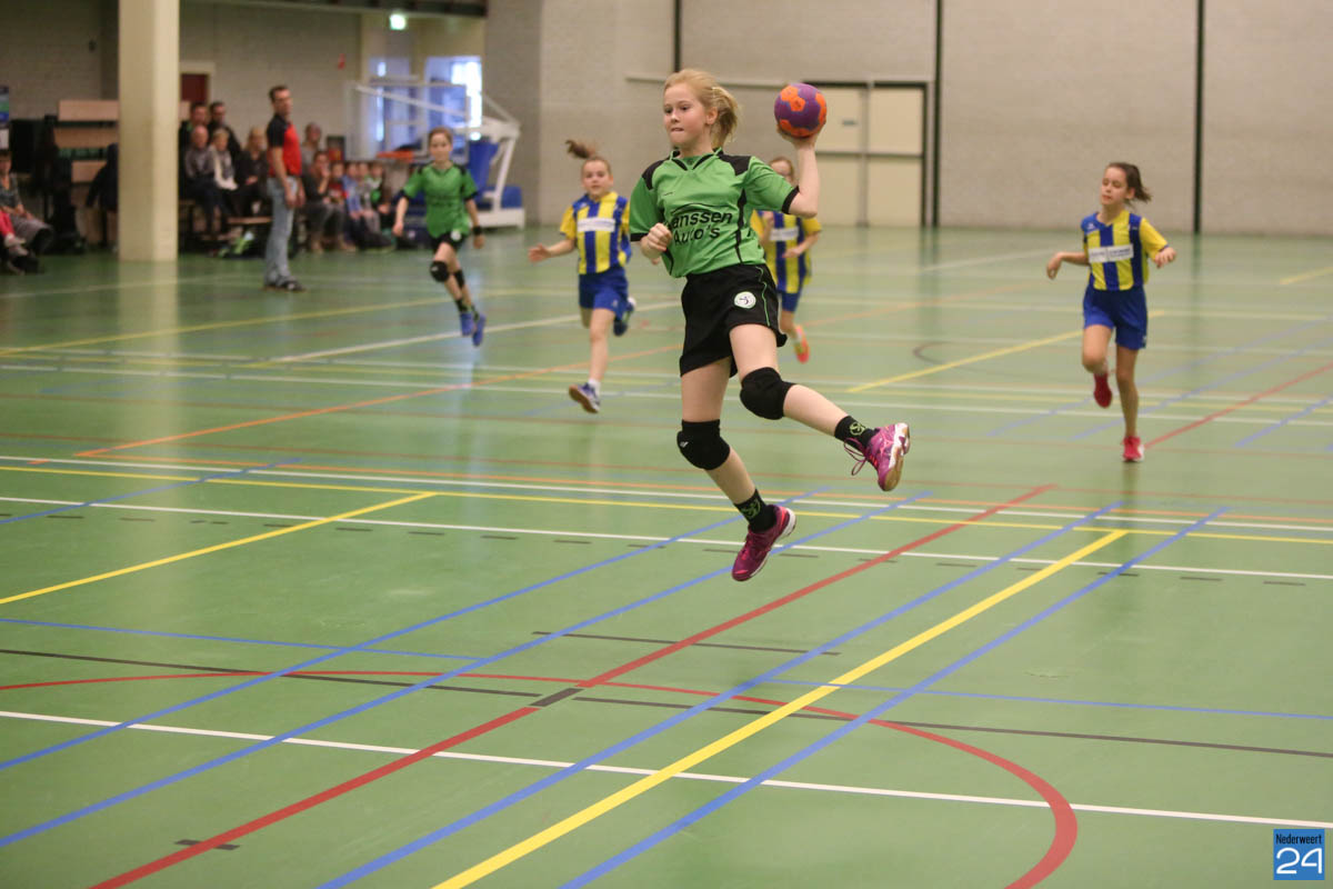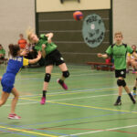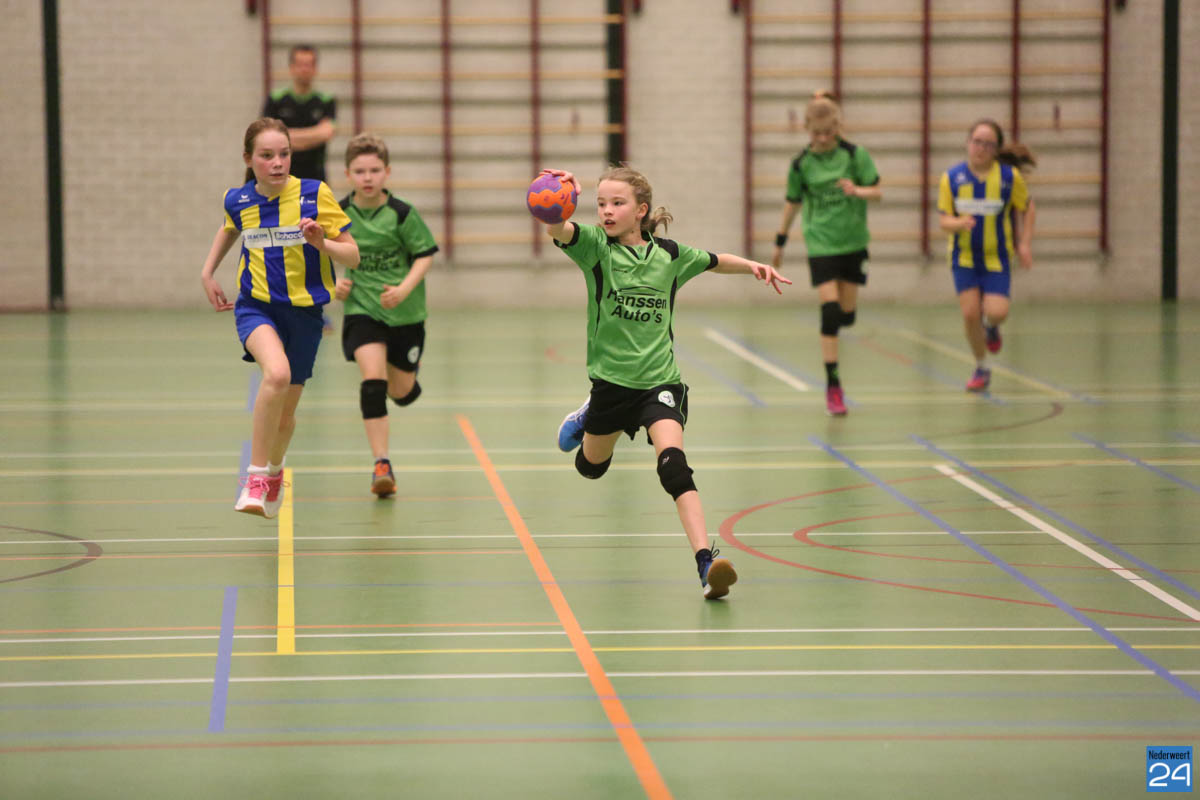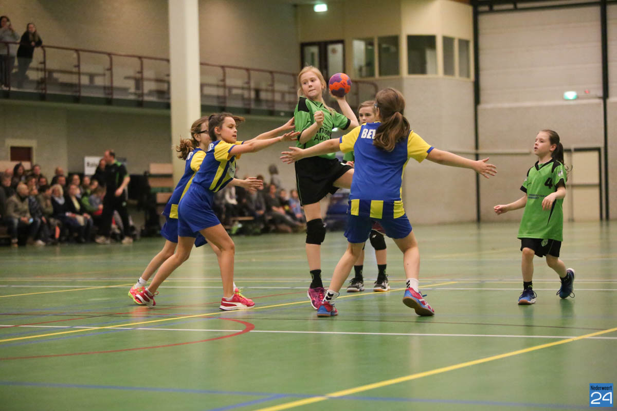 Met spandoeken aan de muur en een goed gevulde tribune ging de wedstrijd om 10.45 uur van start. Al gauw kwam MEOS op voorsprong; stand bij rust 8-1. De tweede helft verliep eveneens goed met als mooi eindresultaat 12-5. De kinderen speelde heel fanatiek en streden voor elke bal. Er waren mooie aanvallen te zien en even mooie reddingen door de keepers. Na het eindsignaal stak een groot gejuich op: MEOS E in zwart en groen, werd vandaag dik verdiend kampioen!