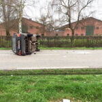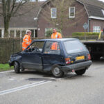 Maandagmorgen is een auto over de kop geslagen na een botsing met een bestelbus op de kruising Weverstraat /Hoogstraat met de Engerstraat en de Kapittelstraat in Hunsel.