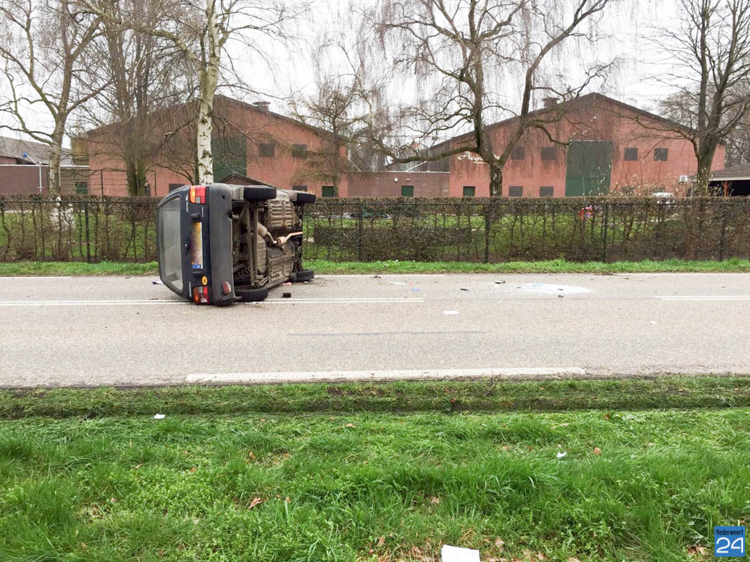 Maandagmorgen is een auto over de kop geslagen na een botsing met een bestelbus op de kruising Weverstraat /Hoogstraat met de Engerstraat en de Kapittelstraat in Hunsel.