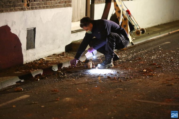 Het lijkt erop dat het explosief aan de buitenkant tegen het raam is gelegd. De stenen van de vensterbank en het hout van de luiken liggen over straat verspreid en zijn ook aan de overkant in de tuin terecht gekomen. Stukken stenen en hout hebben deuken in een ijzeren poort geslagen. Zelfs een straatlantaarn is bezweken door rondvliegend hout en steen.