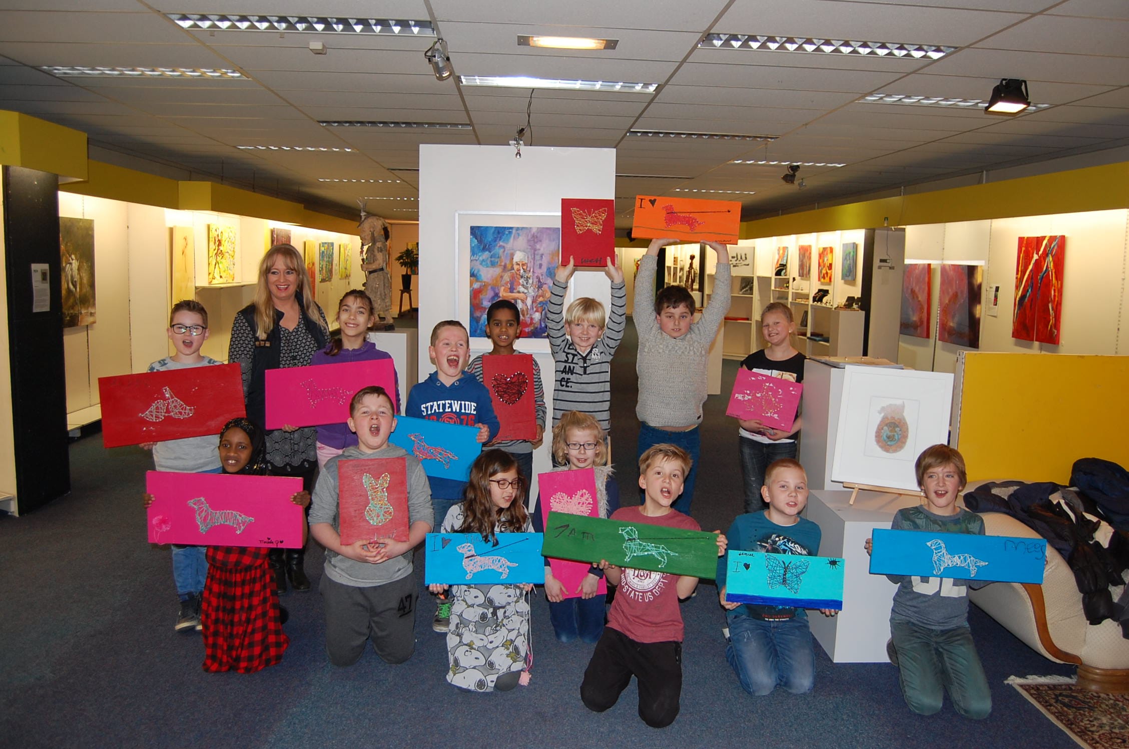 Afgelopen dinsdag bracht onderbouw 4 van SBO Het Palet in Weert een bezoek aan de PopUp Galerie te Nederweert. De reden van dit bezoek is het thema: Palet…..”Uit” de kunst! Een schoolbreed thema waar de hele school op dit moment mee bezig is.