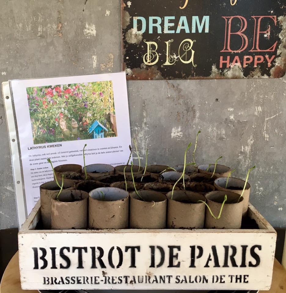 Wat is jouw manier van tuinieren? Ik moet eerlijk bekennen dat ik weleens naar een tuincentrum ga en het niet alleen blijft bij kijken maar er ook soms ‘kant-en-klare planten’ aan mijn vingers blijven plakken. Een vriendin van mij liet me zien hoe ze lathyrus ging kweken. Ze plaatste wc-rollen in een kistje en vulde de rollen met grond waarin ze de zaden stopte die inmiddels zijn gaan ontkiemen. Dat herinnert me aan mijn moeder die vroeger mijn oude slaapkamer vol had staan met allemaal plastic bekertjes waarin ze bloemen en groenten liet ontkiemen alvorens ze te planten.
