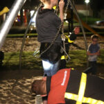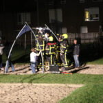 Het incident gebeurde om half tien. De brandweer heeft de schommel weggehaald zodat er niet opnieuw iemand klem komt te zitten.
