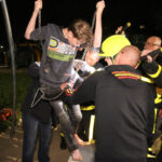 De jongen was in het voor hem “te klein” stoeltje gaan zitten/staan en kwam klem te zitten met zijn benen. Na een aantal poging om eruit te komen hebben zijn vriendjes de brandweer gebeld. Een buurtbewoner had een krukje geregeld waar hij op kon staan zodat hij niet nog meer klem zou komen zitten. Met een schaar is het rubberen stoeltje open geknipt waarna de jongen eindelijk bevrijd was uit zijn benarde positie. “Gelukkig heb ik nergens pijn” aldus de jongen die er wel om kon lachen.