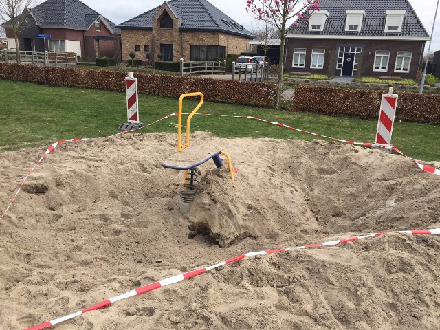 Al enkele maanden wordt er flink gegraven in het speeltuintje aan de Waatskampzijweg in Ospel. Dit keer niet door de gemeente, maar door de jeugd. In de valbodems rondom de toestellen wordt fanatiek gespit. De gemeente is blij dat er massaal gebruikgemaakt wordt van dit speelveldje, want in het zand spelen is natuurlijk prima. Maar de diepe kuilen zorgen voor gevaarlijke situaties! Daarom worden ouders gevraagd om dit met de kinderen te bespreken.