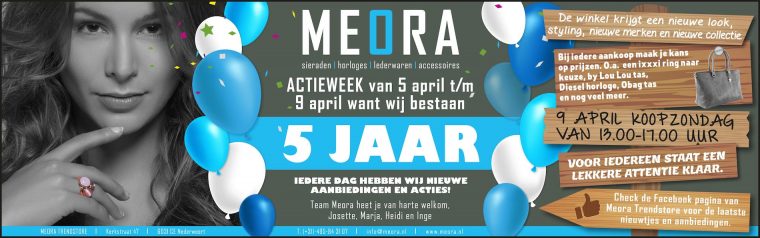 Meora, een trendstore in het hart van Nederweert viert deze week haar 5-jarig jubileum. In die 5 jaar die voorbij gevlogen zijn heeft Meora een enorme groei en diversiteit in merken erbij gekregen. Nu wordt de winkel zelfs gedeeltelijk vernieuwd met een nieuw interieur en styling. Sieraden, horloges, lederwaren, kinderspaarpotjes, bestekjes en schooltassen Meora heeft het allemaal.