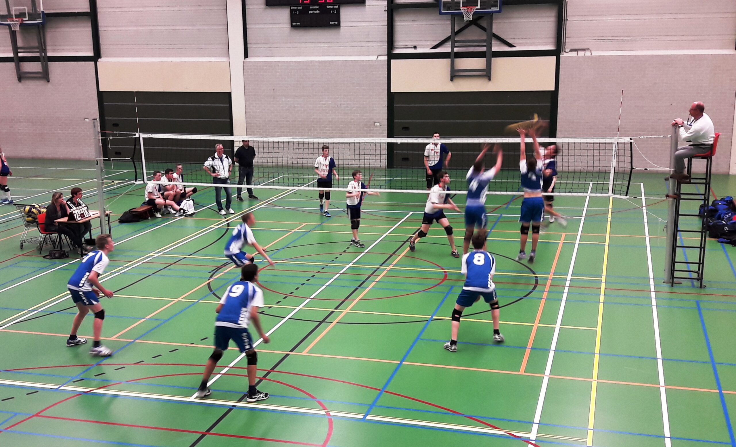 De jongens A1, tweede in de stand, speelde tegen de nr 1, Limac (Limac heeft wél 2 wedstrijden meer gespeeld). Winst was dus nodig om aan te sluiten in de stand. De tegenstander startte echter sterk en nam een voorsprong van 5 punten. De “mannen” van VC Fortutas hadden hun draai maar moeilijk vinden. Net op tijd keerde het tij en haalde de de eerste set binnen met 25-21. De tweede set werd gewonen met 25-10. De derde was een ware thriller. Het was hard werken om Limac bij te blijven. Halverwege gingen het gelijk op om in een zinderende finale de set te pakken met 31-29. Het verzet van Limac was gebroken. De vierde set werd met 25-13 gewonnen. Worden de jongens de volgende kampioenen?