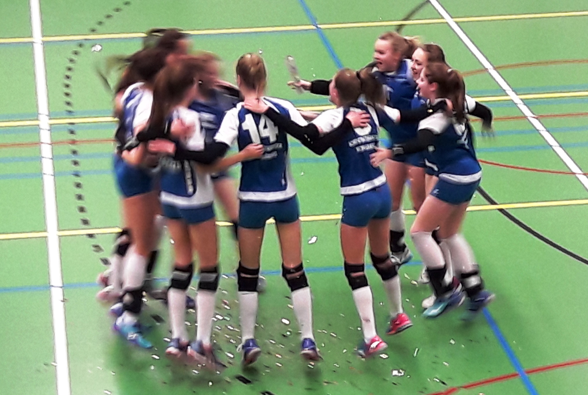 De meiden B1 hadden een heftige dag met twee wedstrijden in de Topklasse. Om 13:00 uur speelden ze in Eindhoven tegen de nummer twee VCE/PSV. Deze wedstrijd werd met 1-3 gewonnen. Om 18:00 uur volgde de wedstrijd tegen de nummer drie Set Up. De kampioenswedstrijd! In de eerste set liep het niet lekker. Set Up liep al snel 4 punten uit en behield de voorsprong. De set werd verloren met 20-25. In de tweede set ontliepen de teams elkaar niet veel. Een eindsprint leverde 25-20 winst op voor de dames uit Nederweert. Set Up was er ondersteboven van waardoor de meiden van VC Fortutas de derde set makkelijk won met 25-7. De vierde set kende een kampioenswedstrijd waardig einde. Met 29-27 wonen de meiden deze set en kon het kampioenschap gevierd worden.