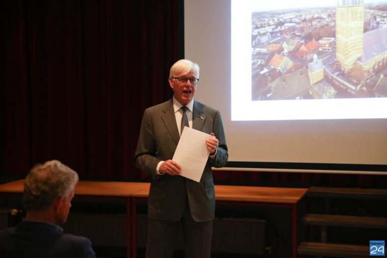 “Of je nu komt vanuit het oosten, het westen, het zuiden of het noorden. Over de A2, de N266 of de N275. Overal zie je hem in de verte al staan. De machtige toren van de St. Lambertuskerk. Een landmark pur sang,” zo begon burgemeester Evers de avond. “Een toren van ons allemaal. De Lambertustoren verkeert momenteel in zwaar weer. De slijtage van het metselwerk gaat sneller achteruit dan verwacht en een grote renovatie is nodig”. Daarom is een aantal mensen benaderd die de handschoen oppakken om een steentje bij te dragen aan het herstel van de historische toren.