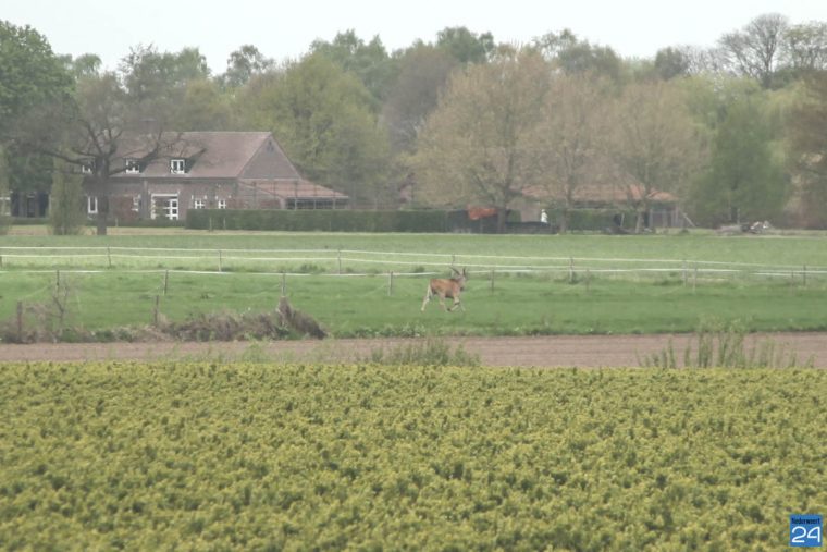 UPDATE: Uiteindelijk bleek het te gaan om twee dieren. Beide elandantilopes zijn afgeschoten omdat ze de veiligheid van het verkeer in gevaar brachten. Eén dier is in de buurt van Hunsel neergeschoten. De tweede volgde niet veel later aan de Belgische grens. De dode dieren zijn teruggebracht naar de boerderij. De politie was met verschillende auto’s ter plaatse om de veiligheid te waarborgen.