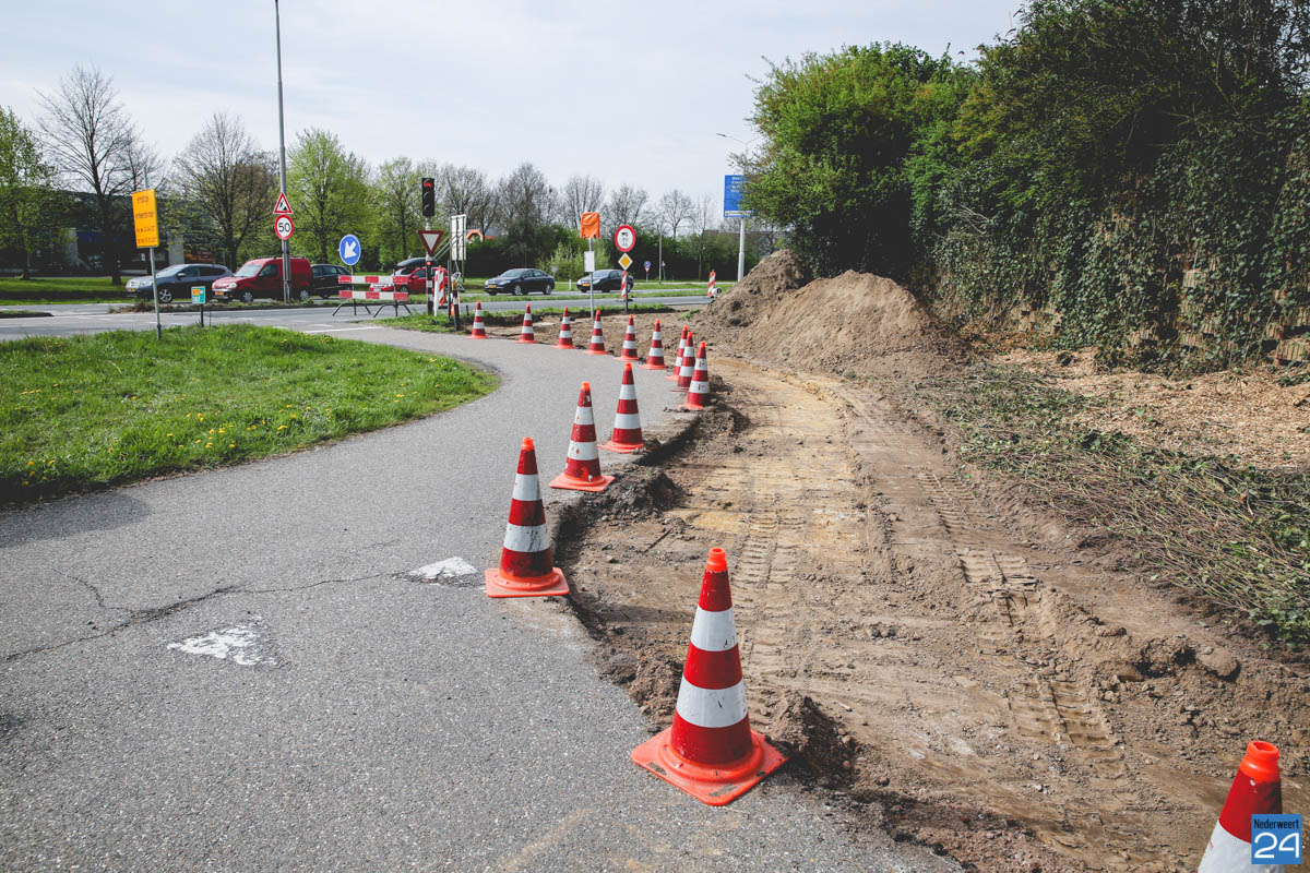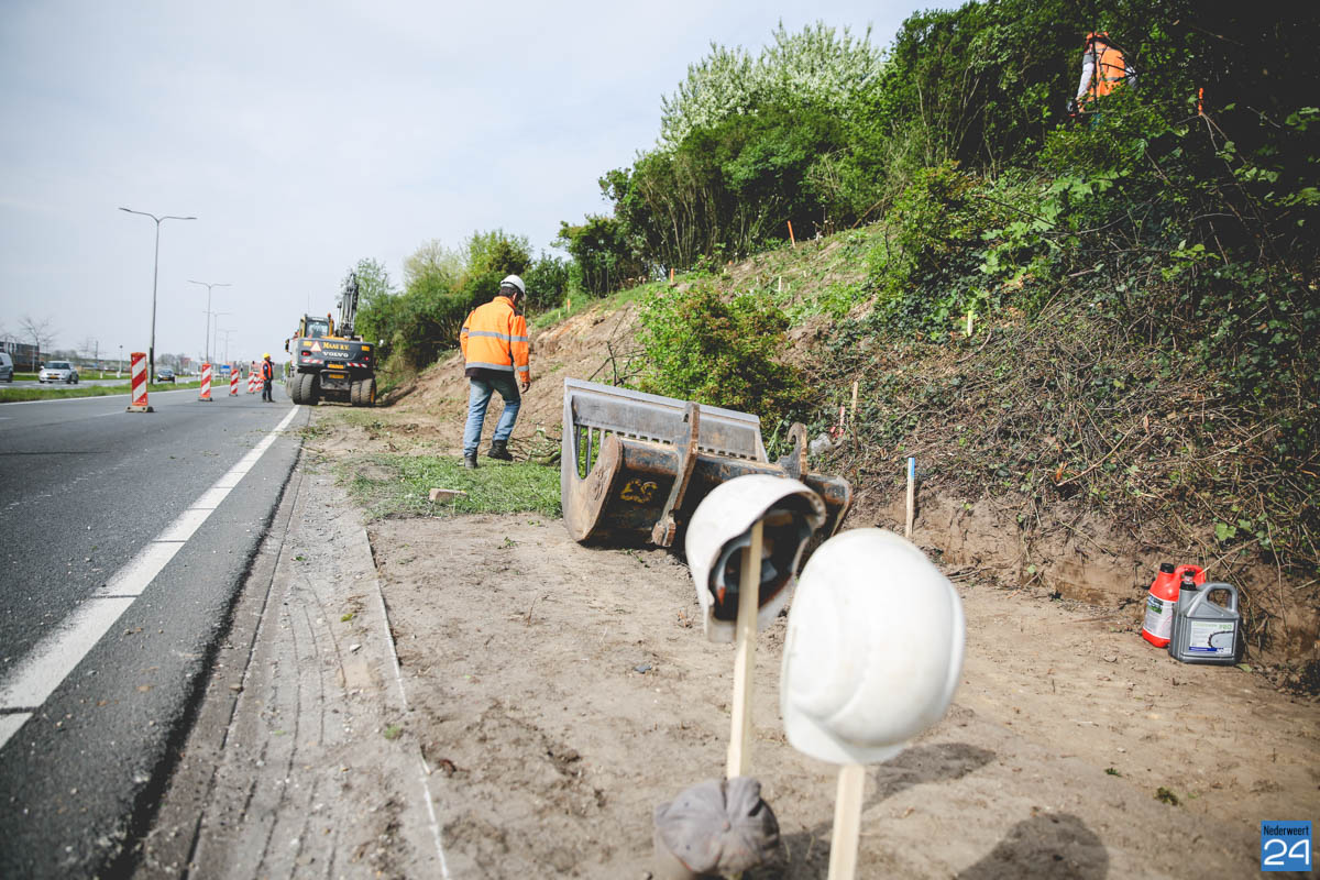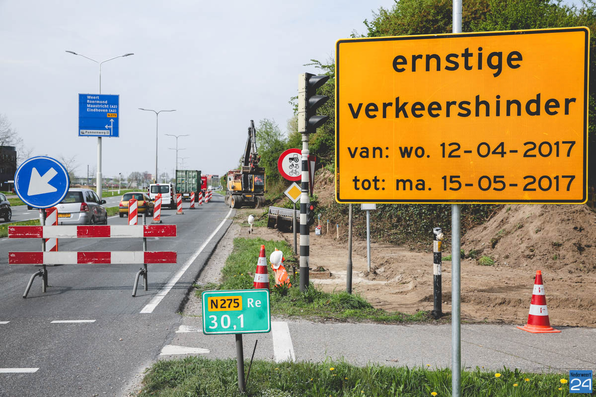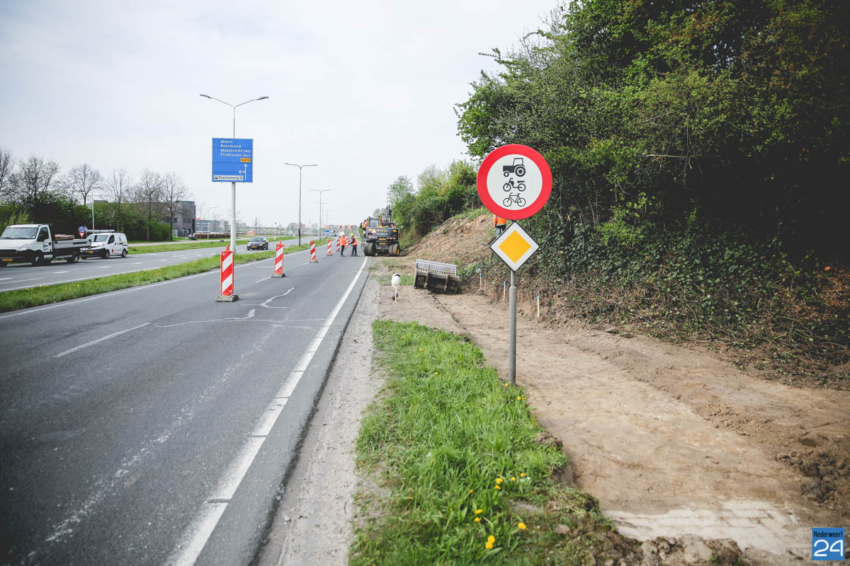 Om veilig te kunnen werken is nu in de richting van Weert één rijbaan afgesloten. Dit leidt, zeker tijdens de spits, tot flink wat verkeersoverlast. Een stuk van de geluidswal wordt weggegraven zodat er voldoende ruimte is voor een bushalte. Er komt een damwand die zorgt dat de geluidswal in takt blijft. Vanaf het kruispunt tot aan de bushalte komt een voetgangerspad en er komt een fietsenstaplaats.