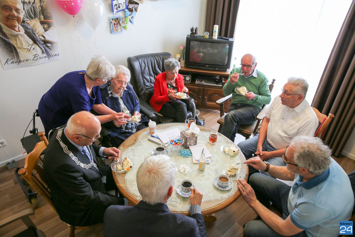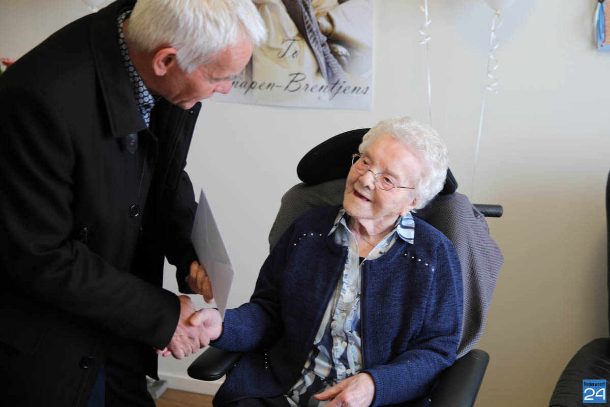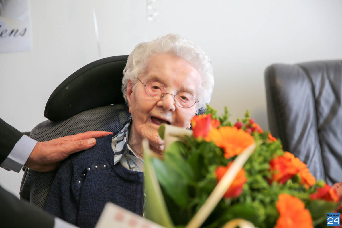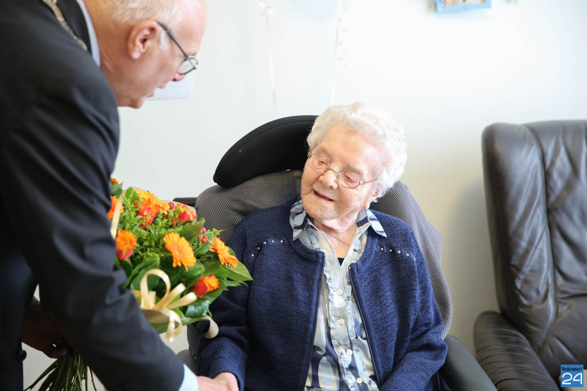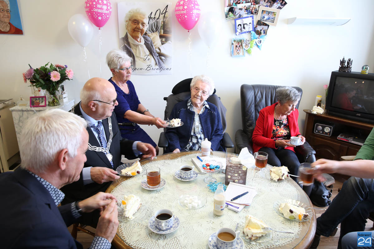 Aanstaande zaterdag 15 april viert To Knapen-Brentjens haar 104e verjaardag. To is al een paar jaar de oudste inwoner van de gemeente Nederweert. Burgemeester Evers en wethouder Geraats verrasten de feesteling donderdagmiddag alvast met een dikke, mooie bos bloemen. Het is de vierde keer dat het college op bezoek gaat bij To.