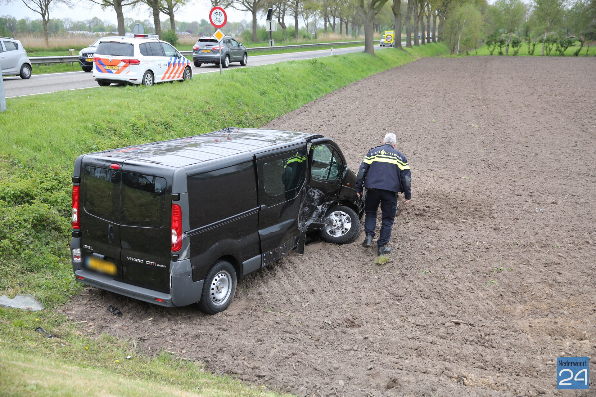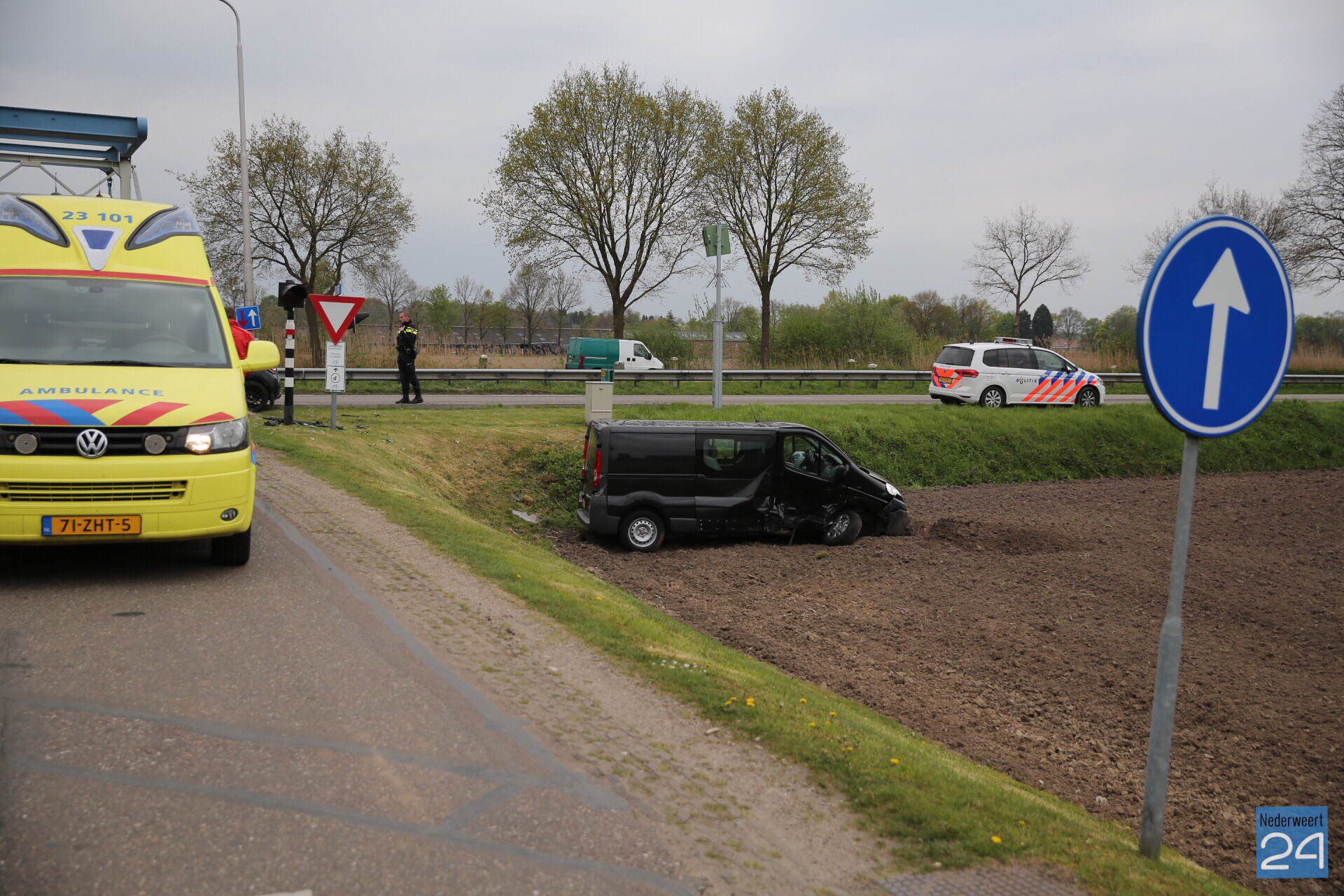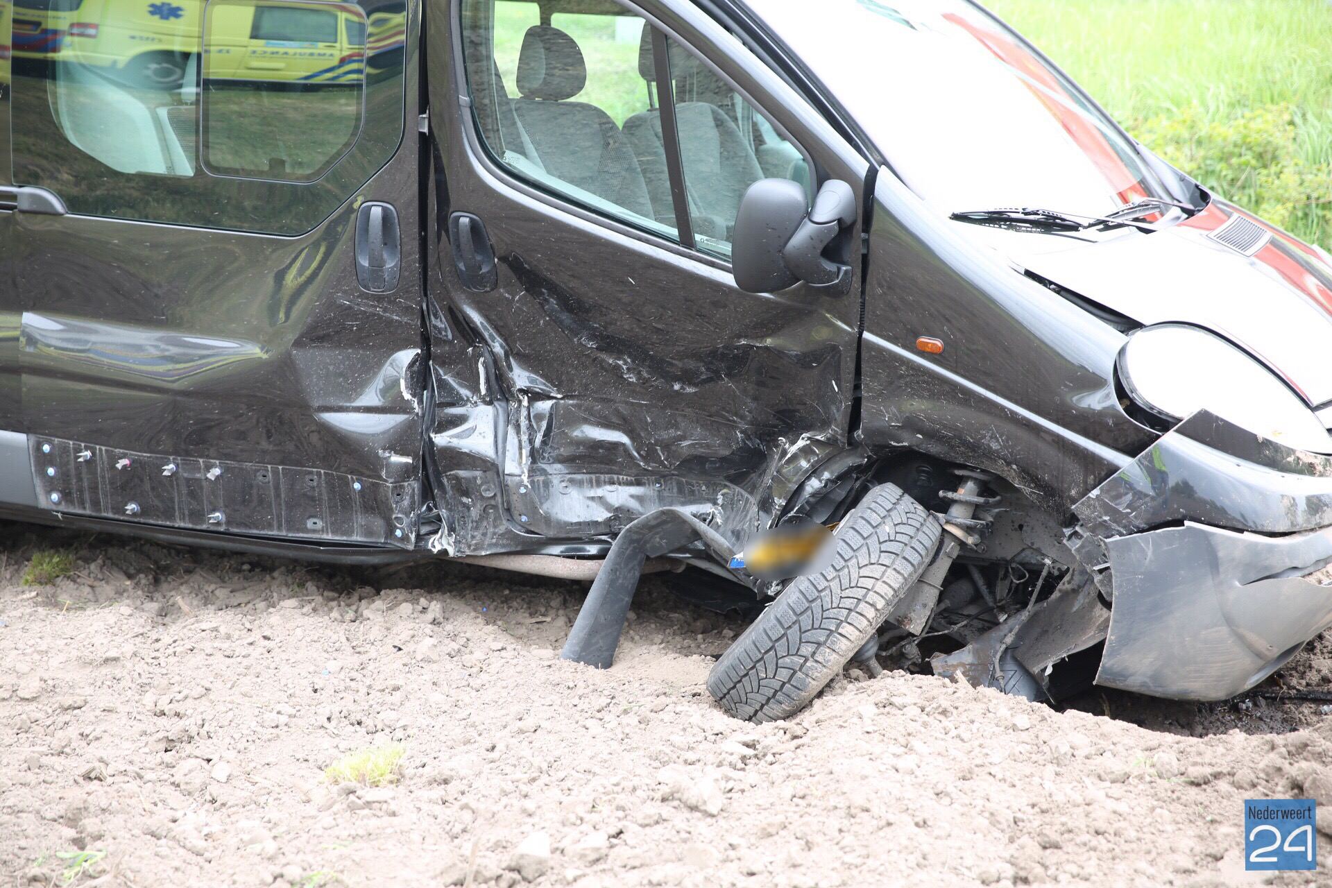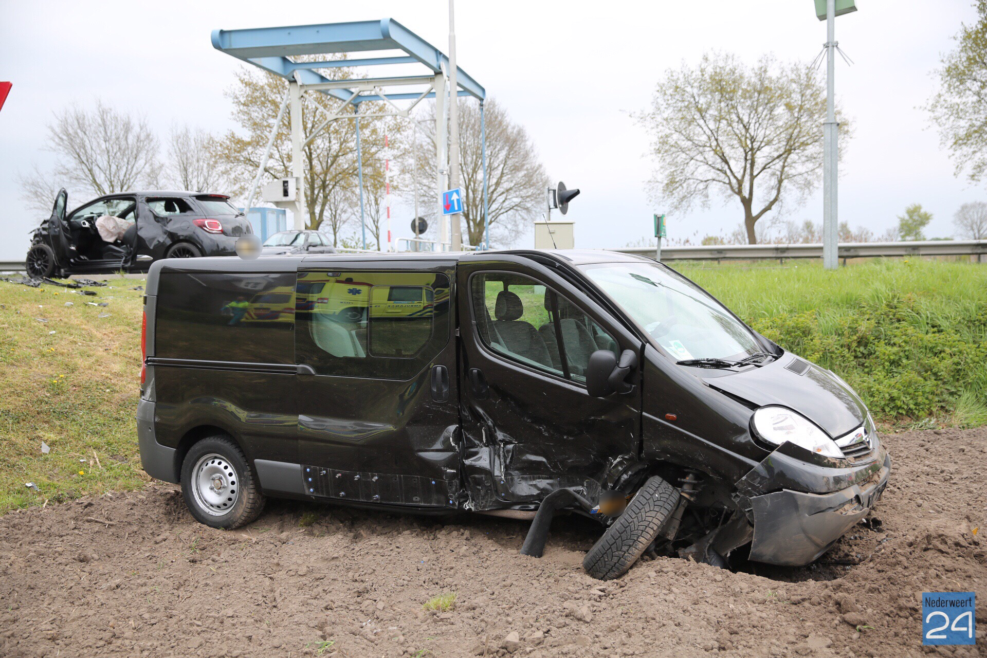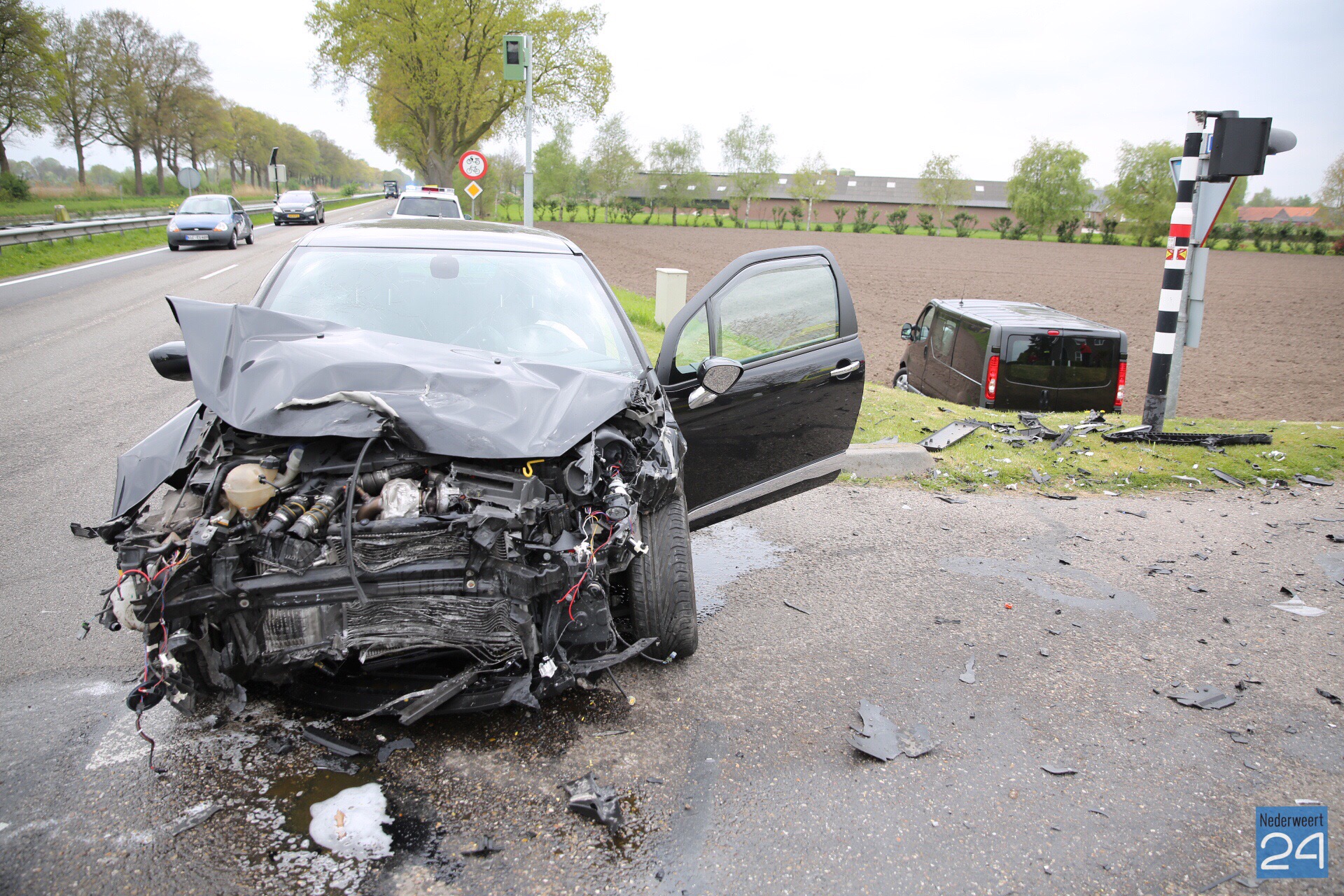 Vrijdagmiddag zijn een personenauto en een bestelbus hard met elkaar in botsing gekomen op de Venloseweg (N275) ter hoogte van de Niesakkerbrug in Ospel.