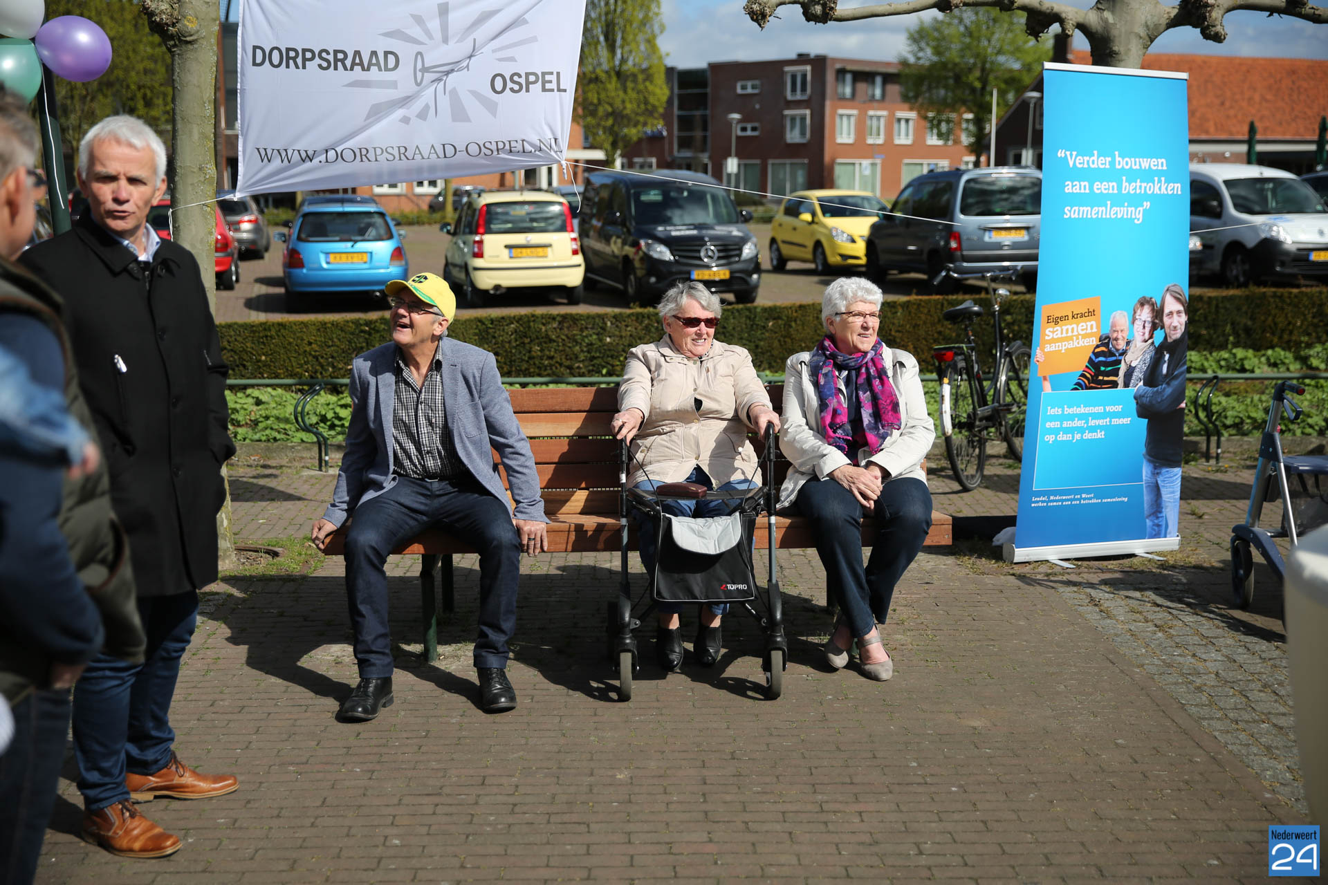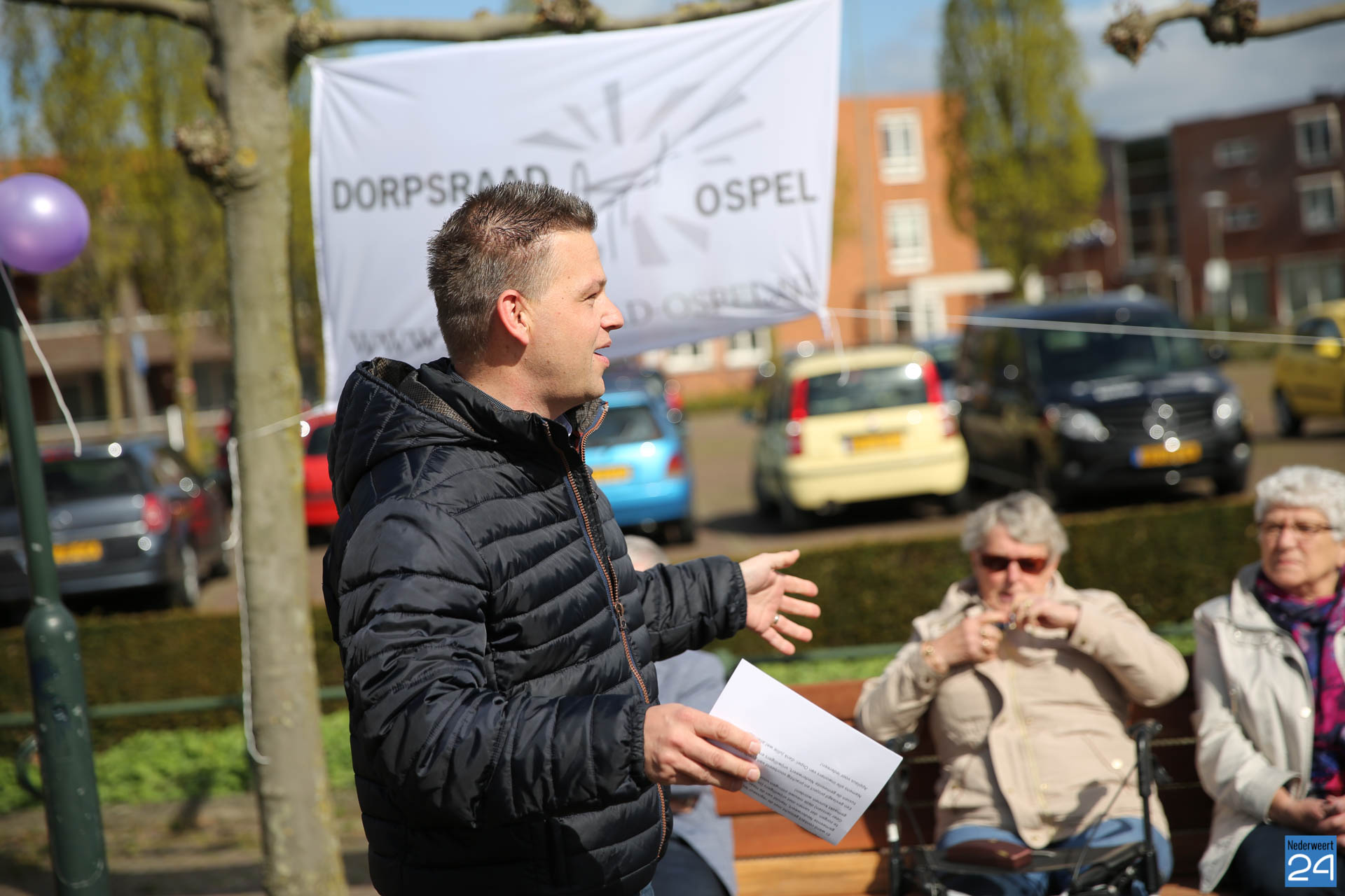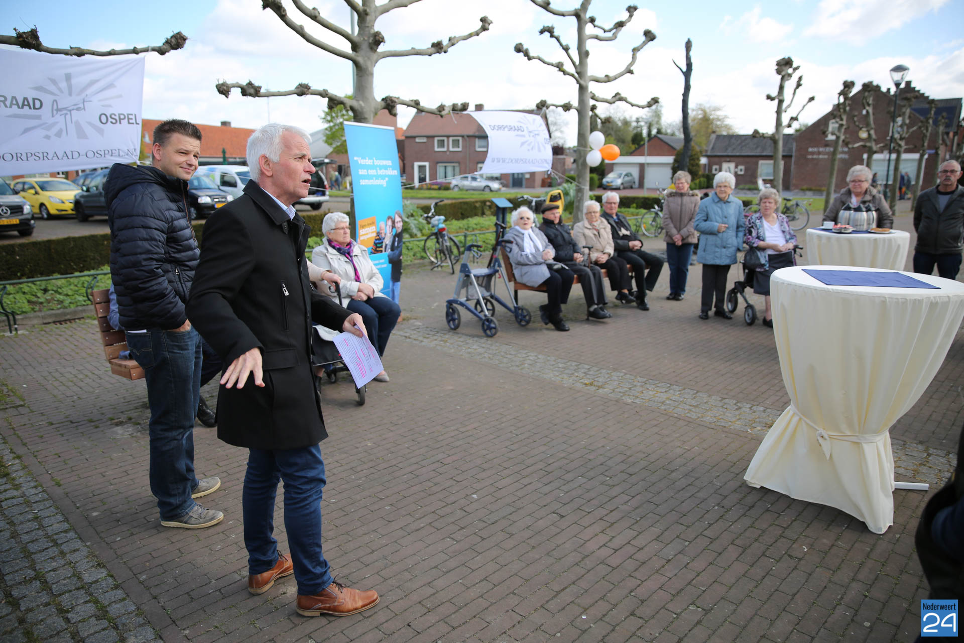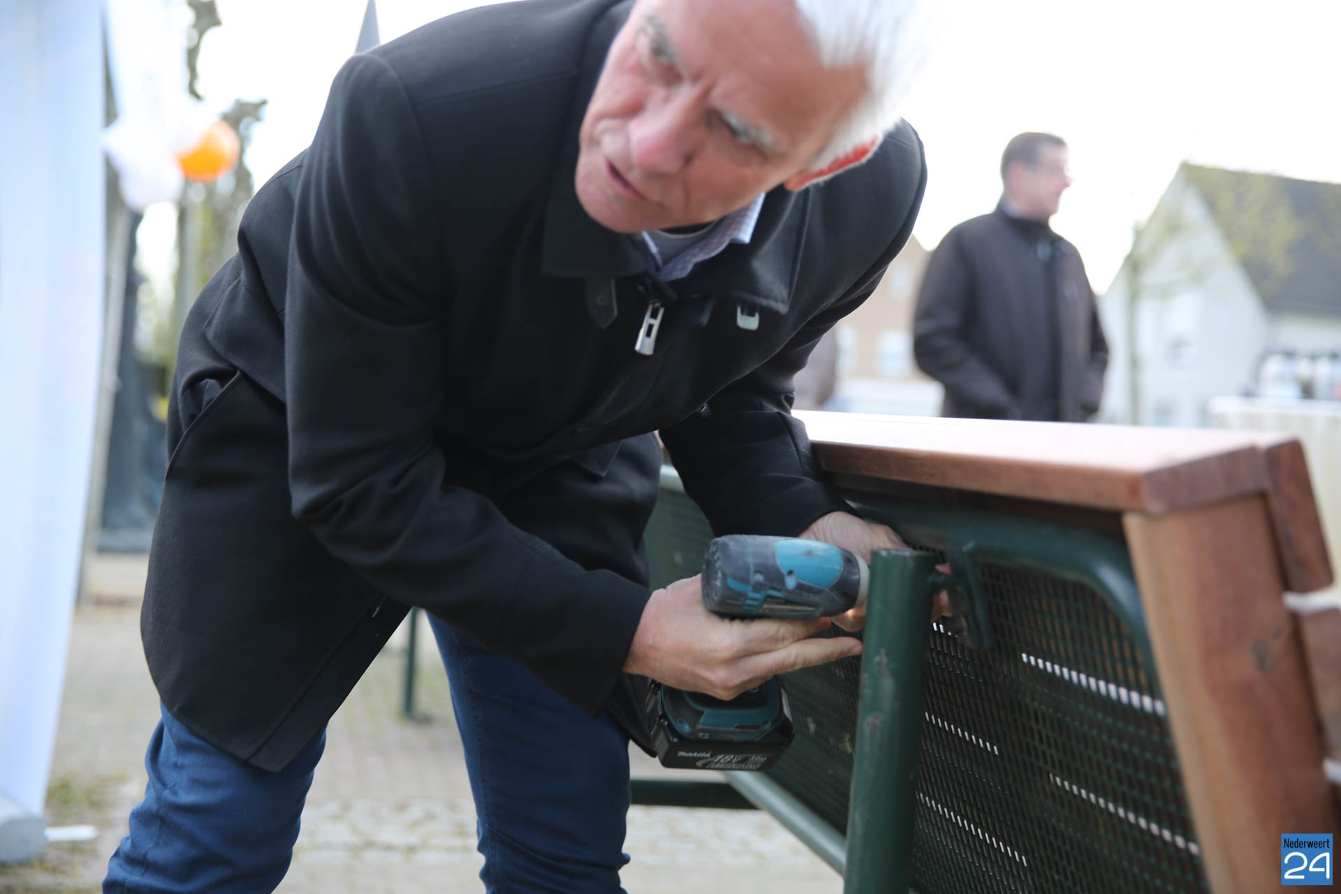 Wethouder Henk Geraats heeft symbolisch de laatste schroef in de bankjes gedraaid en daarmee zijn de bankjes officieel in gebruik genomen. Ze nodigen weer uit om te gaan zitten, echte “Ospelse ontmoetingsbankjes” aldus voorzitter Jeroen Hennissen van Dorpsraad Ospel.