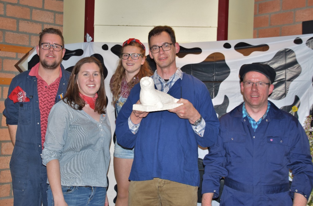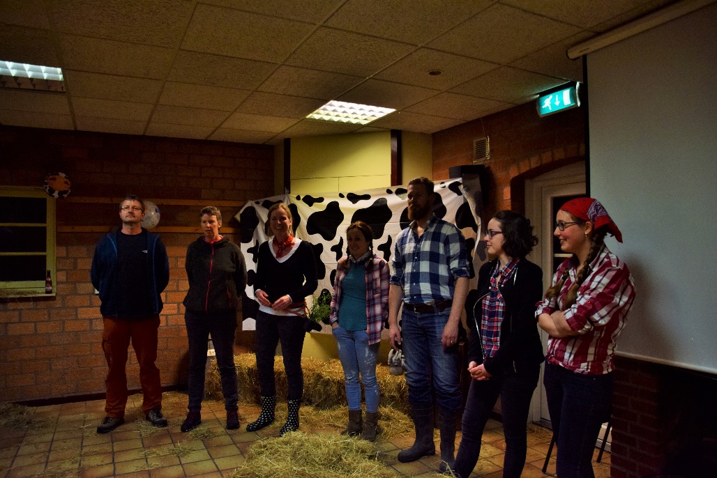 Na dit officiële gedeelte riep Chris als verrassing Koen Roost naar voren. Koen kreeg als eerste een lintje van Scouting. Het Goud Waard-lintje voor al het werk wat hij in de afgelopen jaren bij Scouting heeft gedaan. Vervolgens werden er nieuwe leiding en leden van het bestuur “ontgroend”. Ze moesten een spel in een hooiberg zoeken en meedoen aan een kwis. Daarna volgde de zwijntjesrace die alles met het thema van de feestavond “Boeren en boerinnen” te maken had.