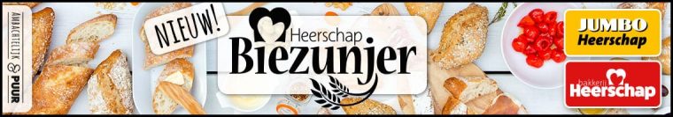 Vanaf woensdag 3 mei ligt ‘Biezunjer’ in de winkels van Jumbo Heerschap. Biezunjer staat voor het unieke desembrood van Bakkerij Heerschap. Het brood wordt op natuurlijke wijze in de streek bereid. “Bakkerij Heerschap heeft na veel onderzoek en testen de perfecte desemformule ontdekt,” vertelt Bernd Janissen, bedrijfsleider Bakkerij Heerschap. “Het resultaat ligt nu in de winkels van Heerschap.” Biezunjer is te koop als wit, bruin en meergranen stokbrood, en als witte, bruine en meergranen broodjes. De naam? Die dankt het nieuwe brood aan de biezunjere bereiding én smaak.
