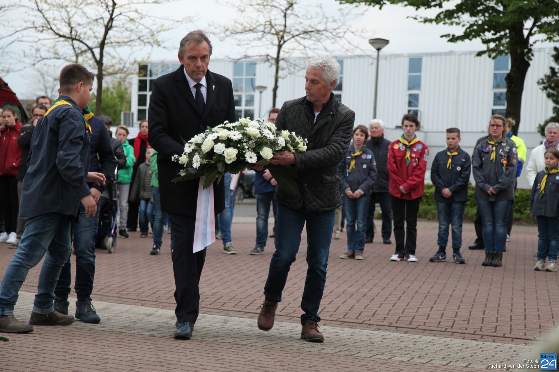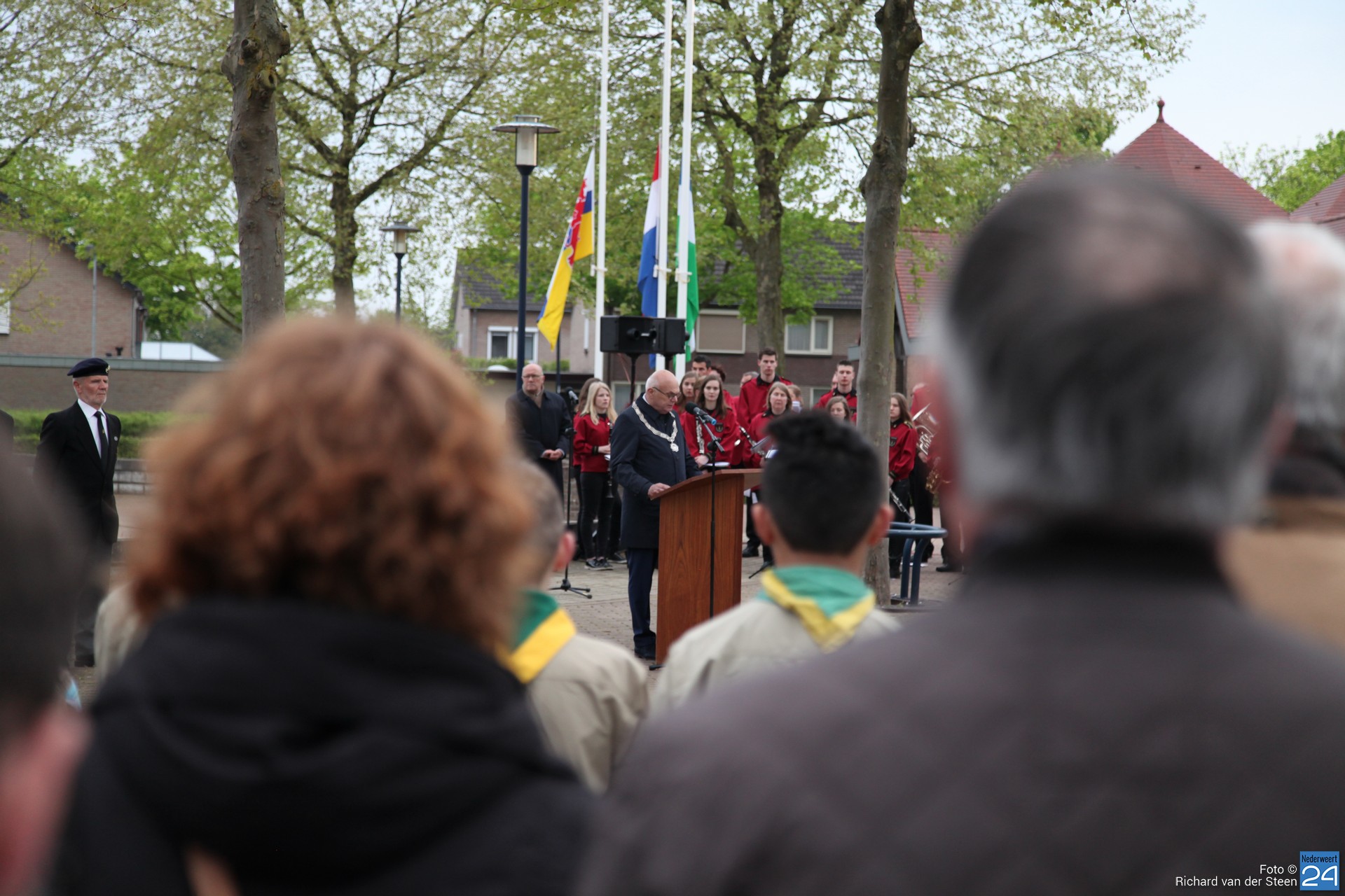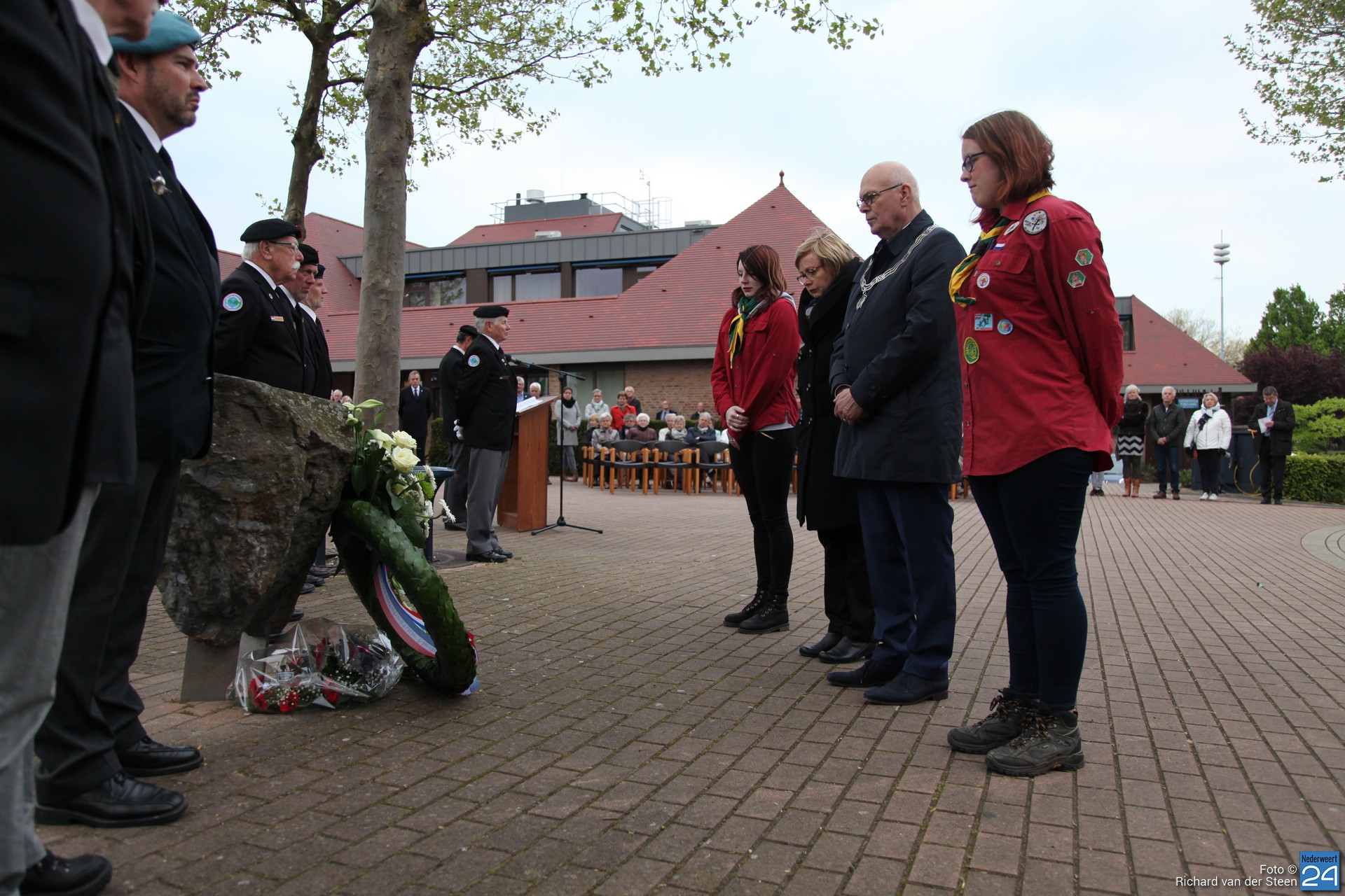 Burgmeester Evers hield een toespraak en pastoor Koumans ging voor in gebed. Er waren voordrachten van Eliza Gerris, Teun van de Winkel en Juul Gerris, leerlingen van Openbare Basisschool De Klimop. “Vandaag herdenken we en morgen vieren we feest”. Na een lied gezongen door Zangvereniging de Leeuwerik en het “Wilhelmus“ van Harmonie Pro Musica Nederweert-Eind werd de druk bezochte bijeenkomst respectvol afgesloten en werd iedereen uitgenodigd voor een kopje koffie of thee in het gemeentehuis.