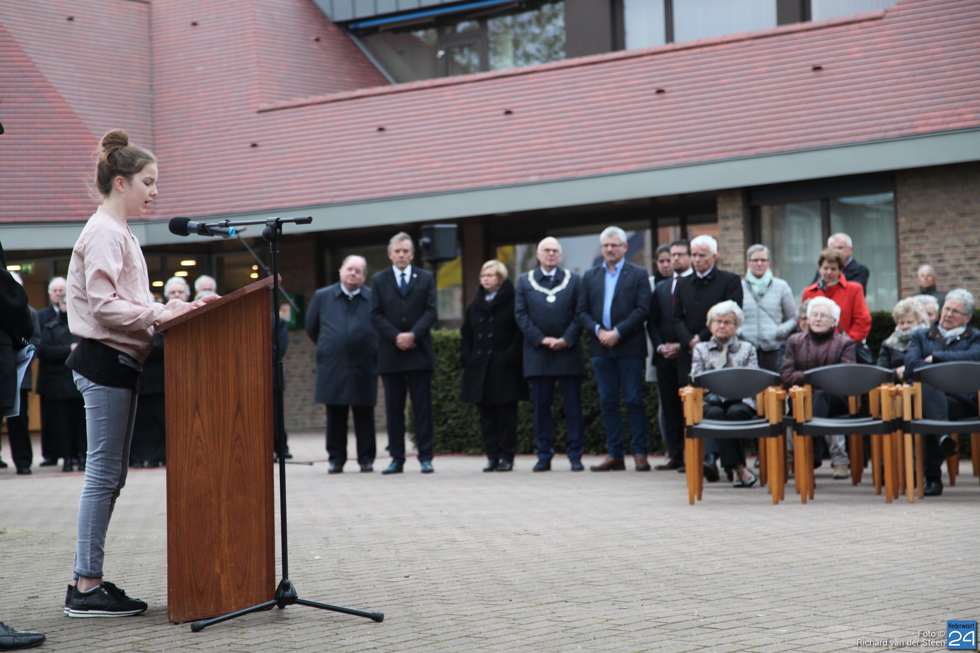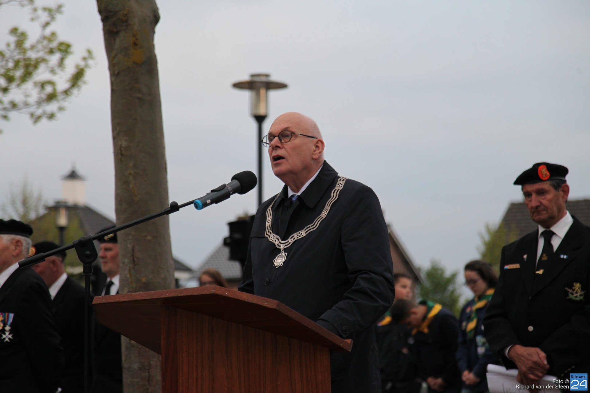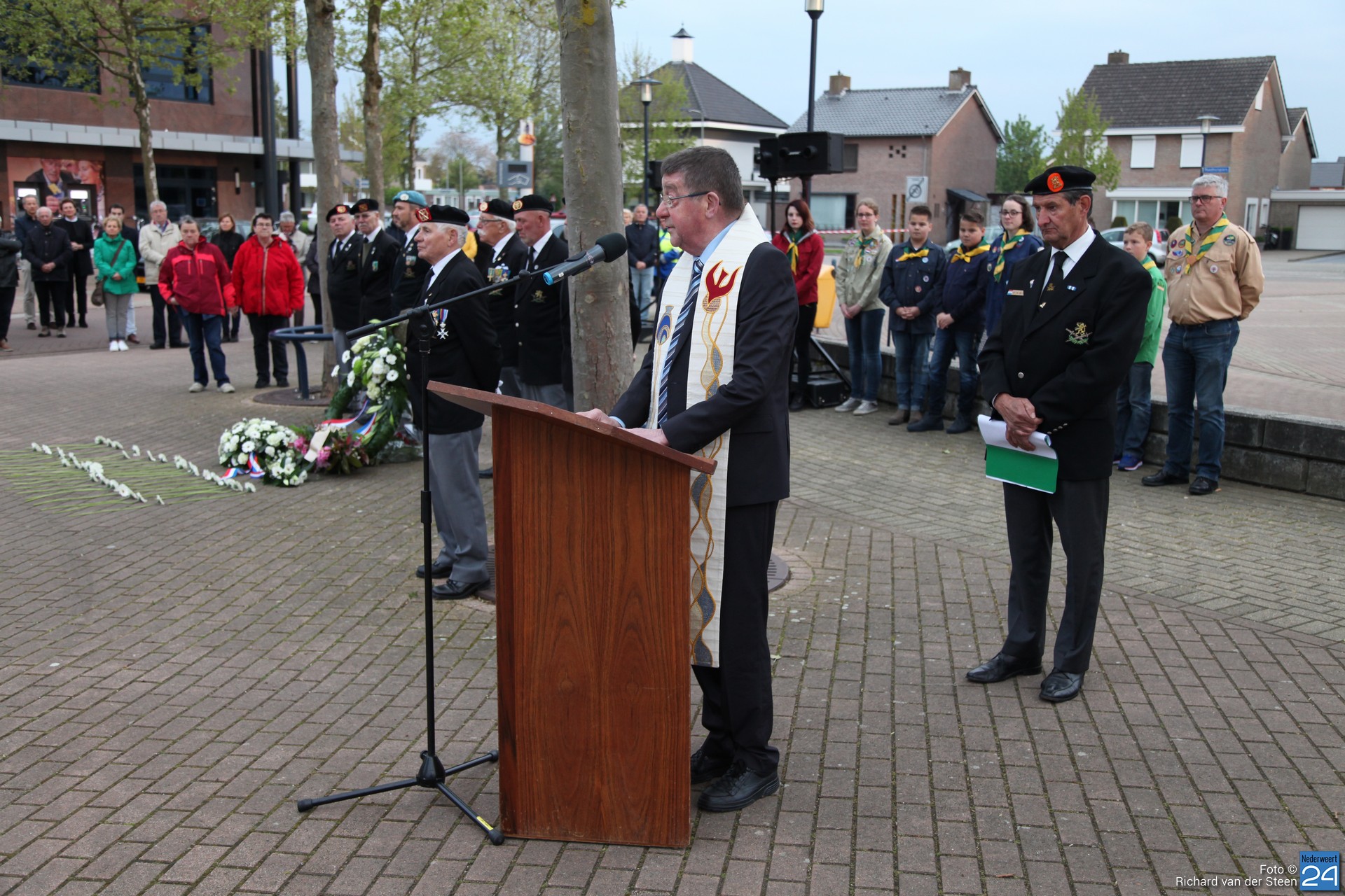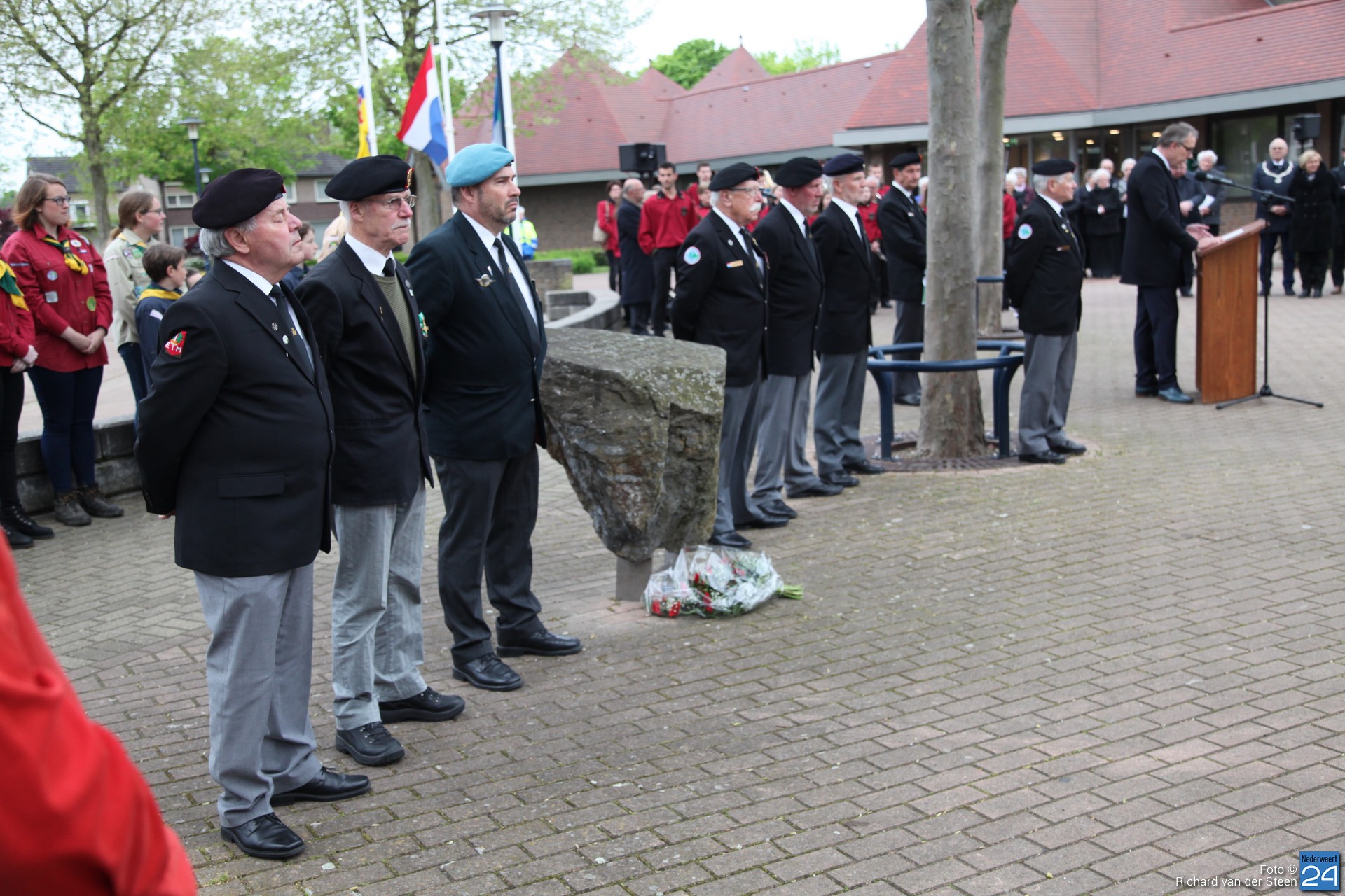 Burgmeester Evers hield een toespraak en pastoor Koumans ging voor in gebed. Er waren voordrachten van Eliza Gerris, Teun van de Winkel en Juul Gerris, leerlingen van Openbare Basisschool De Klimop. “Vandaag herdenken we en morgen vieren we feest”. Na een lied gezongen door Zangvereniging de Leeuwerik en het “Wilhelmus“ van Harmonie Pro Musica Nederweert-Eind werd de druk bezochte bijeenkomst respectvol afgesloten en werd iedereen uitgenodigd voor een kopje koffie of thee in het gemeentehuis.