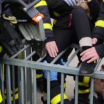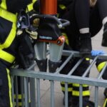 De brandweer heeft met een spreider de spijlen iets uit elkaar geduwd waarna het meisje haar been weer los kreeg. In eerste instantie was ze vrolijk, maar met zoveel kijkers en stoere brandweermannen om zich heen vond ze het toch wel spannend. Arm in arm ging ze met moeder naar huis.