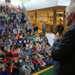 Tijdens de opening droeg de wethouder de tekst voor van het lied “Hallo wereld” van Kinderen voor Kinderen en de kinderen zeiden hem na.