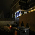 Toen de brandweer ter plaatse kwam, sprong de kat van de rand van het balkon op een plat dak. Brandweerlieden zijn met een ladder op het dak geklommen om het diertje te vangen maar zodra ze dichterbij kwamen, vluchtte hij weg. Uiteindelijk schoot de kat via een smal muurtje de Emmasingel op en verdween in de duisternis.