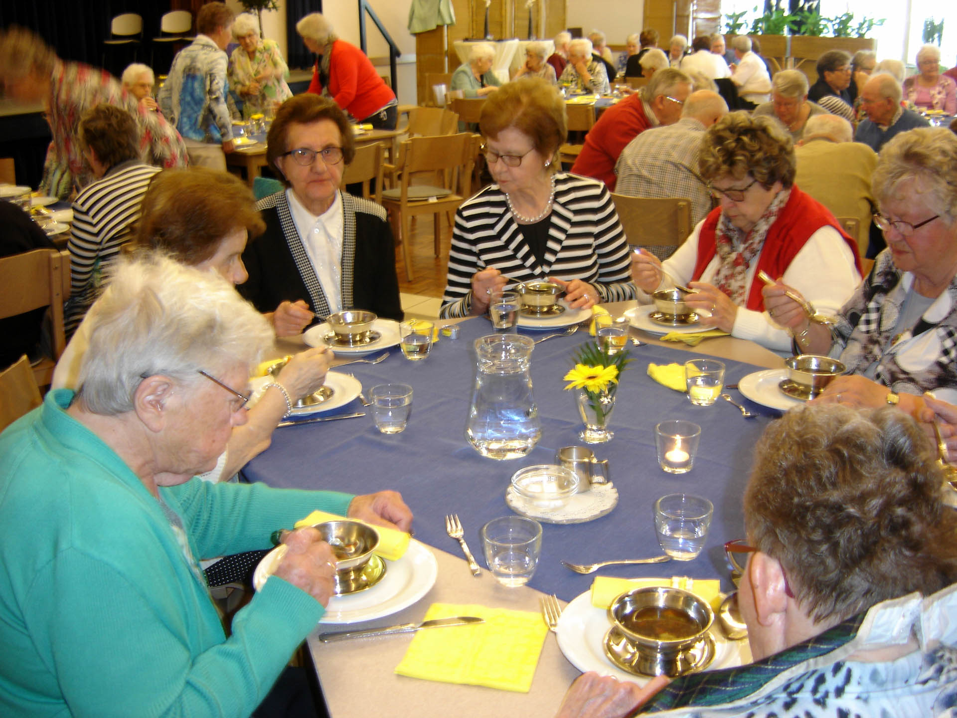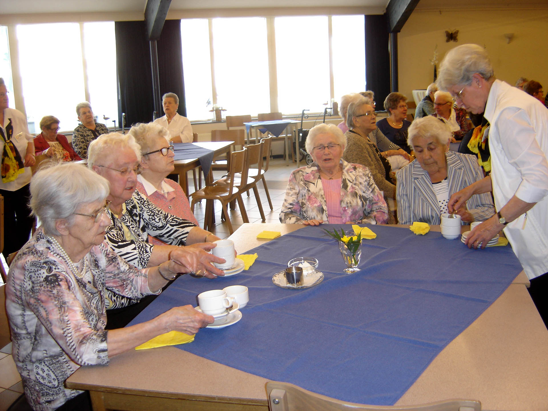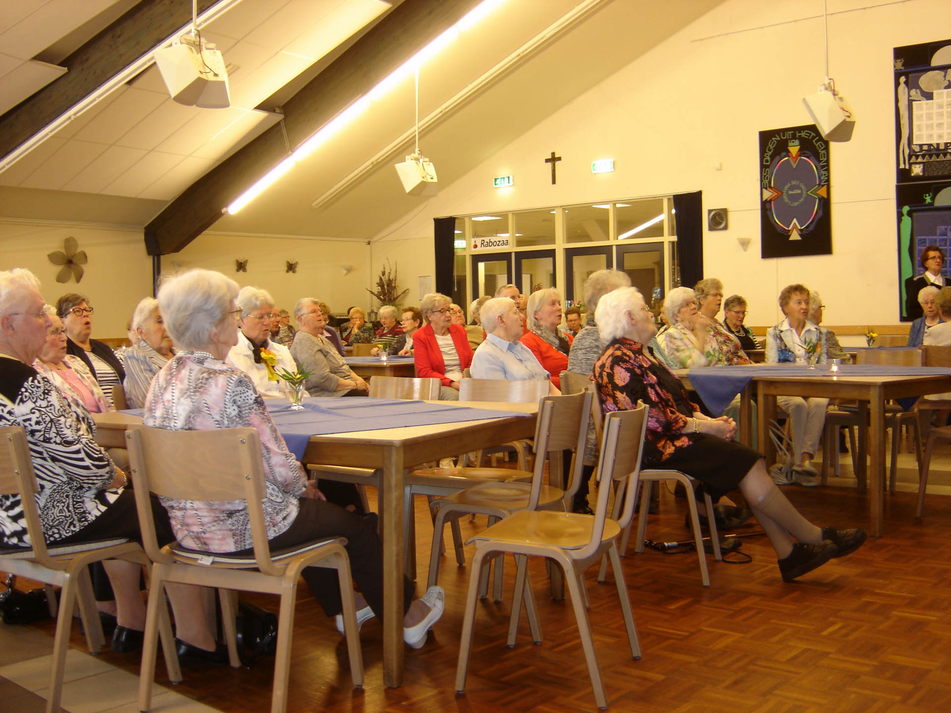 Na een door eigen vrijwilligers verzorgde gebedsdienst, opgeluisterd door de muziekklanken van het zangkoor De Peelklanken werd eerst een kopje koffie/thee genuttigd met wafels. Ook na de gebedsdienst was het zangkoor niet te beroerd om nog enkele liederen ten gehore te brengen, dit nadat wethouder Geraats de gasten van De Zonnebloem had toegesproken.
