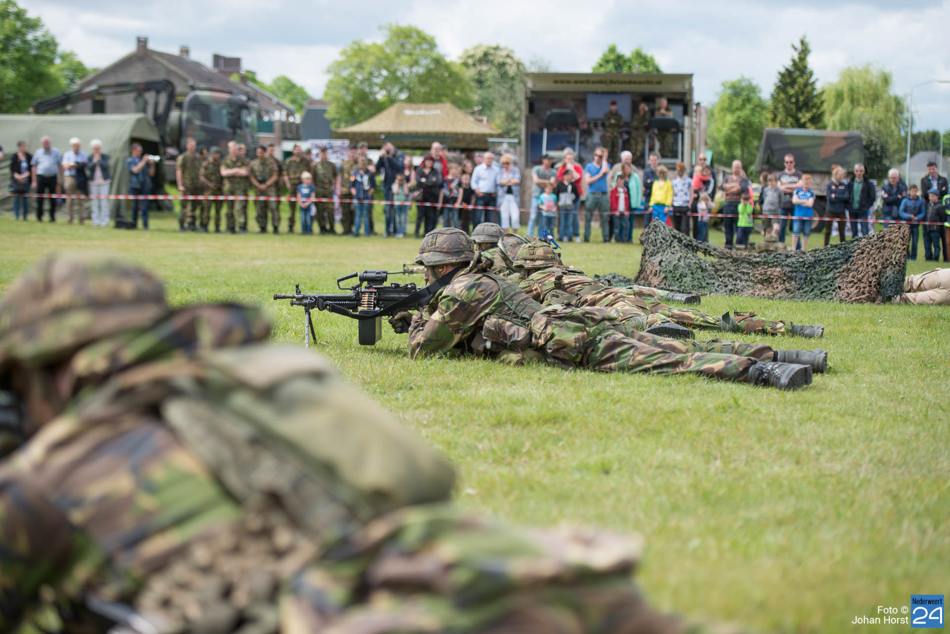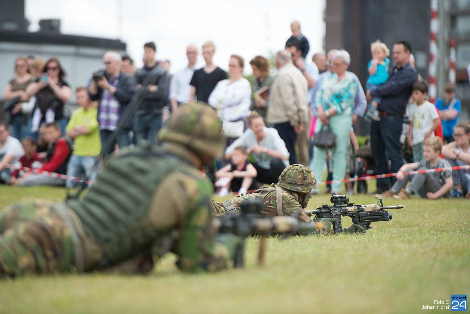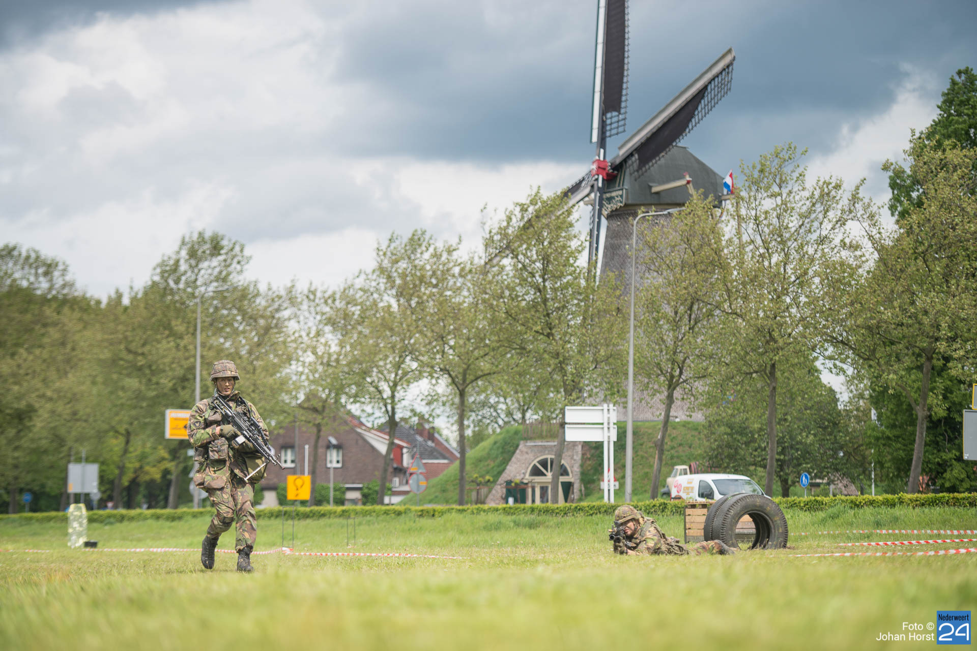 Het was tijdens de monumentendag in Weert dus iets minder rustig maar wel vreedzaam. Naast het afdalen van de Martinustoren werd er, na het openingsschot, een aanval ingezet aan de Eindhovenseweg. Er vielen enkele gewonden en de “vijand” werd overmeesterd. Hierbij werd oefenmunitie gebruikt: dat knalde wel, maar was natuurlijk niet gevaarlijk. Daarna was er weer alle tijd om de wapens en voertuigen van dichtbij te bekijken.