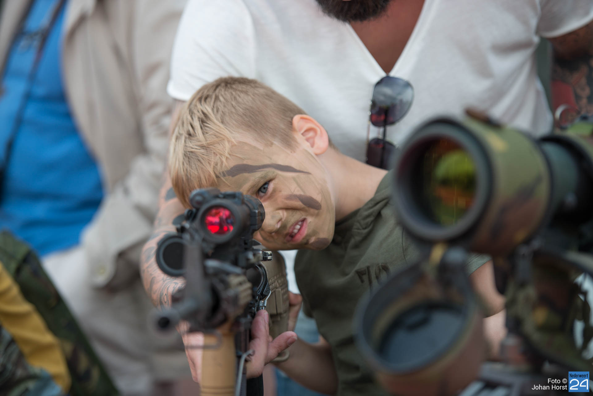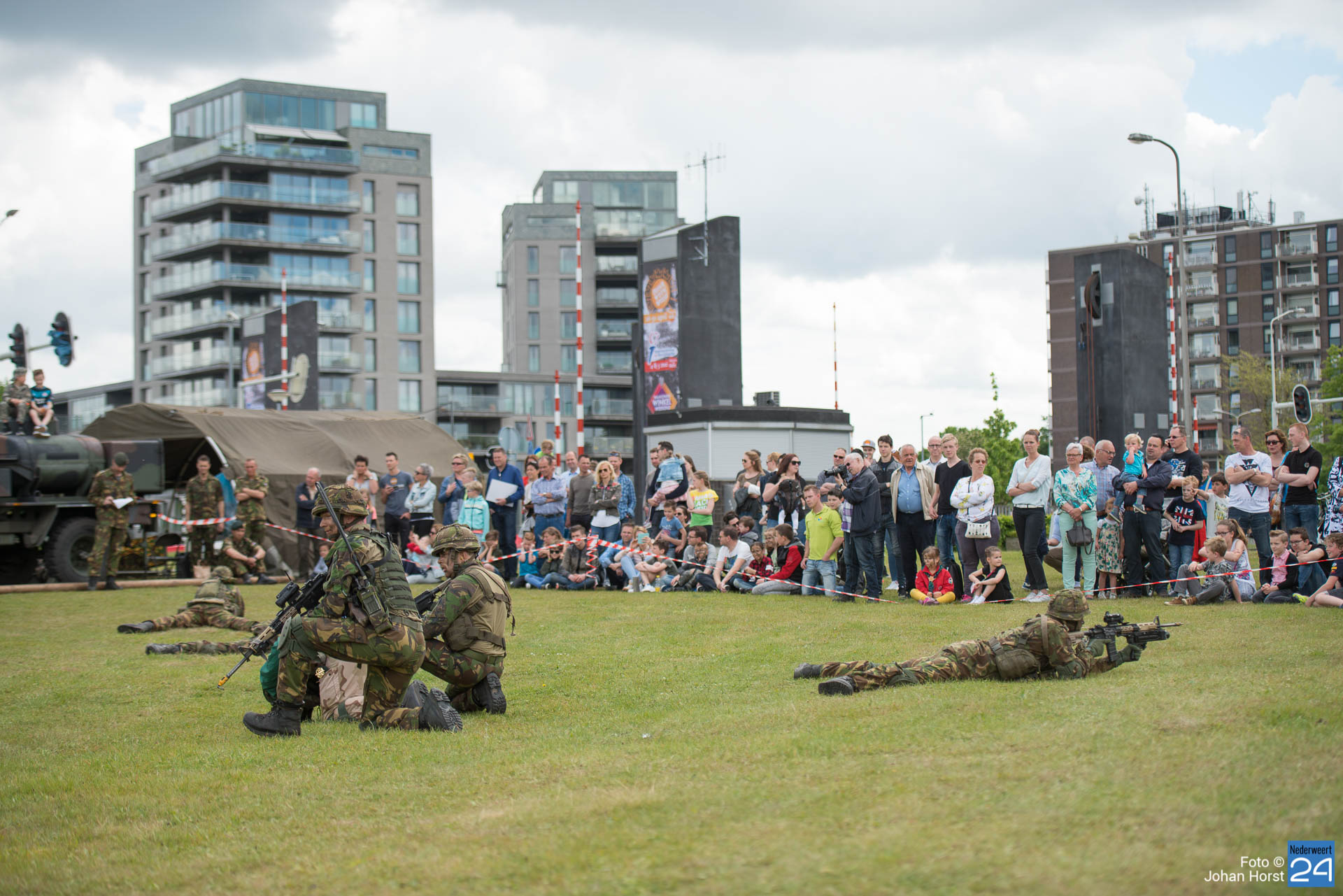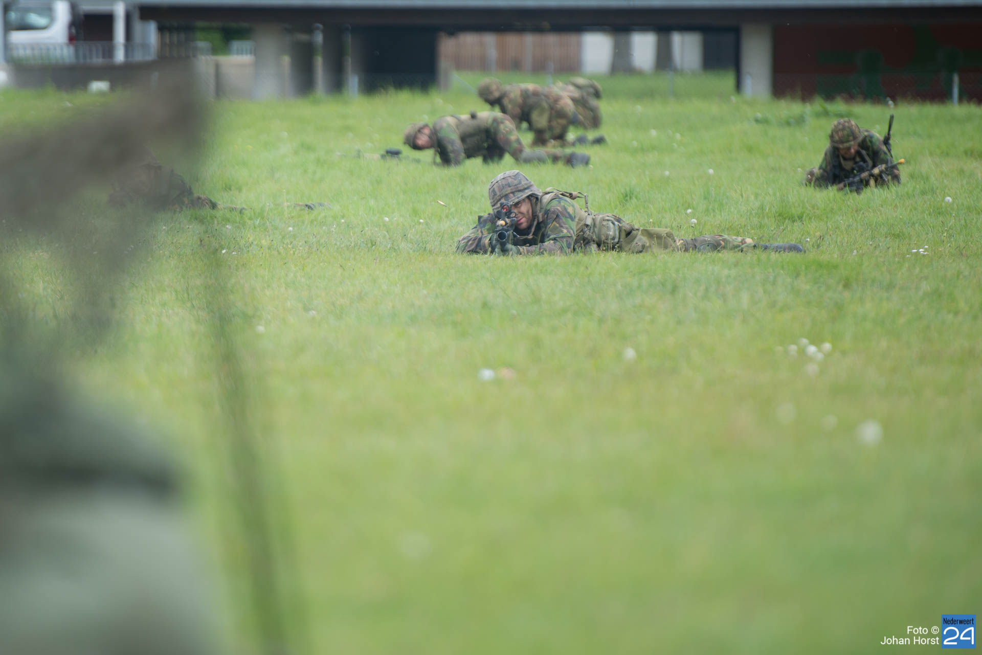Het was tijdens de monumentendag in Weert dus iets minder rustig maar wel vreedzaam. Naast het afdalen van de Martinustoren werd er, na het openingsschot, een aanval ingezet aan de Eindhovenseweg. Er vielen enkele gewonden en de “vijand” werd overmeesterd. Hierbij werd oefenmunitie gebruikt: dat knalde wel, maar was natuurlijk niet gevaarlijk. Daarna was er weer alle tijd om de wapens en voertuigen van dichtbij te bekijken.