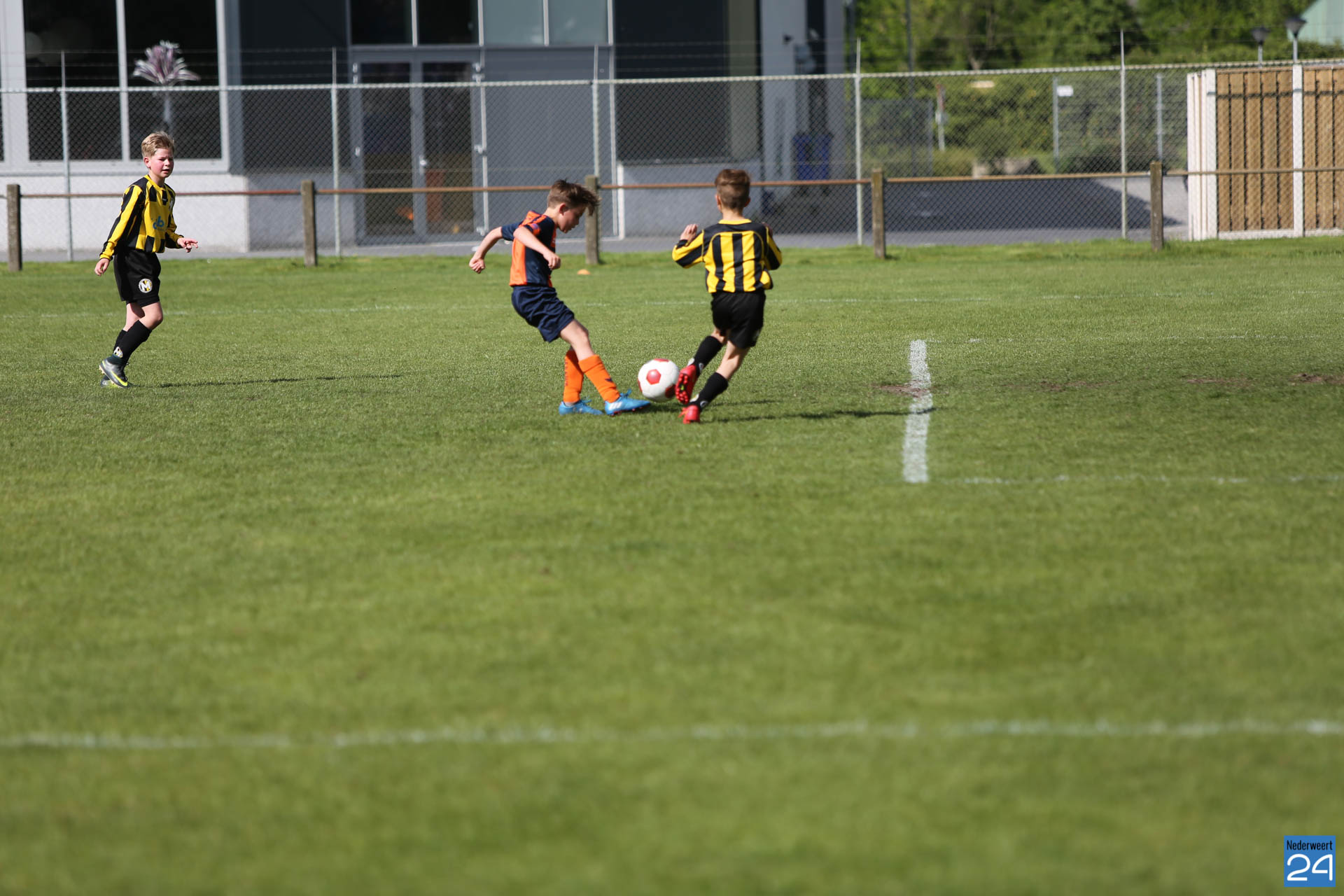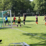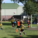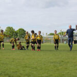 Nadat afgelopen maandag van Herten met 12-1 gewonnen werd was het doelsaldo ook weer goed opgekrikt en was het duidelijk dat ze vandaag ongeslagen kampioen zouden worden. Toch een klein beetje gespannen begonnen de jongens vandaag enthousiast aan de wedstrijd tegen oranje blauw uit Vlodrop.