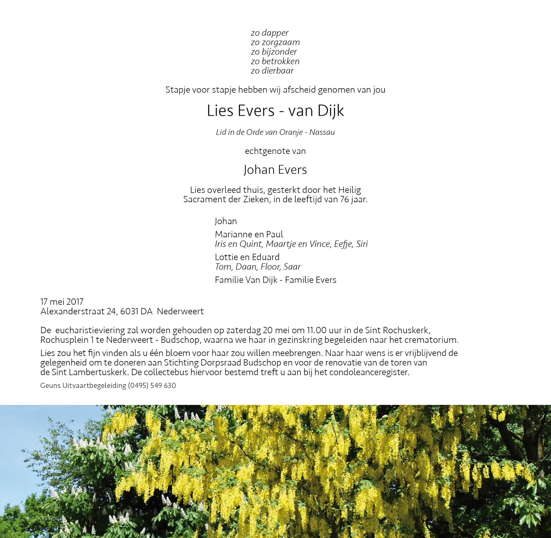 Familie Evers gecondoleerd met dit grote verlies we wensen jullie heel veel sterkte