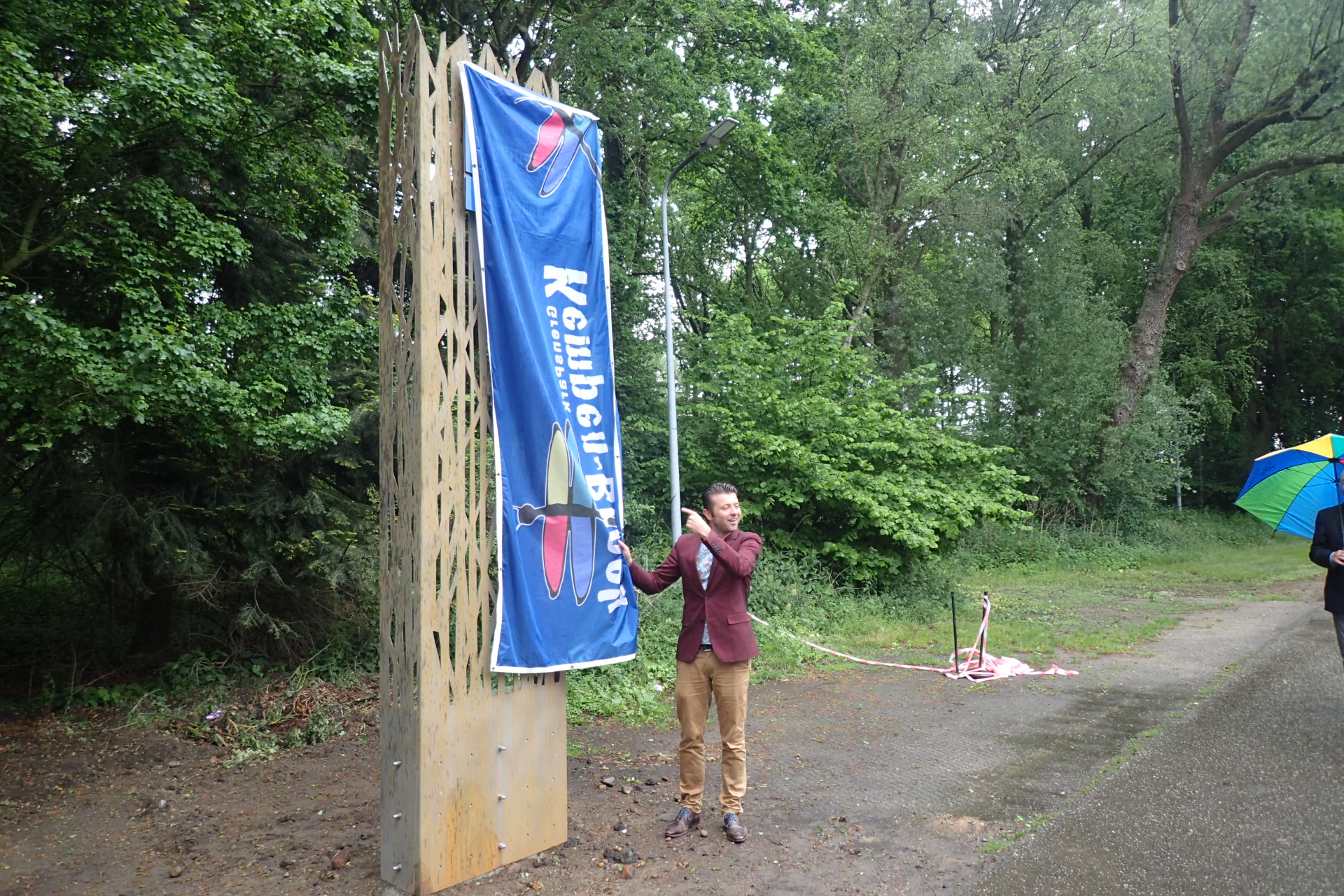 Wethouder Geert Gabriëls heeft vandaag de nieuwe hoofdtoegangspoort van grenspark Kempen~Broek geopend. Hij deed dat door onthulling van de nieuw geplaatste bakens bij de IJzeren Man in de huisstijl van het Kempen~Broek.
