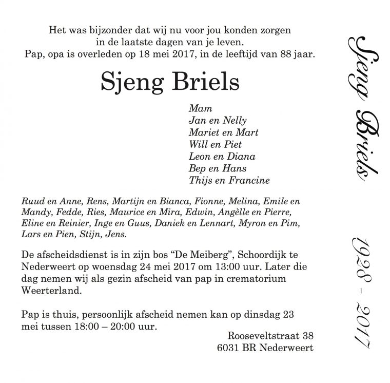Allemaal gecondoleerd met het verlies van Sjeng Briels