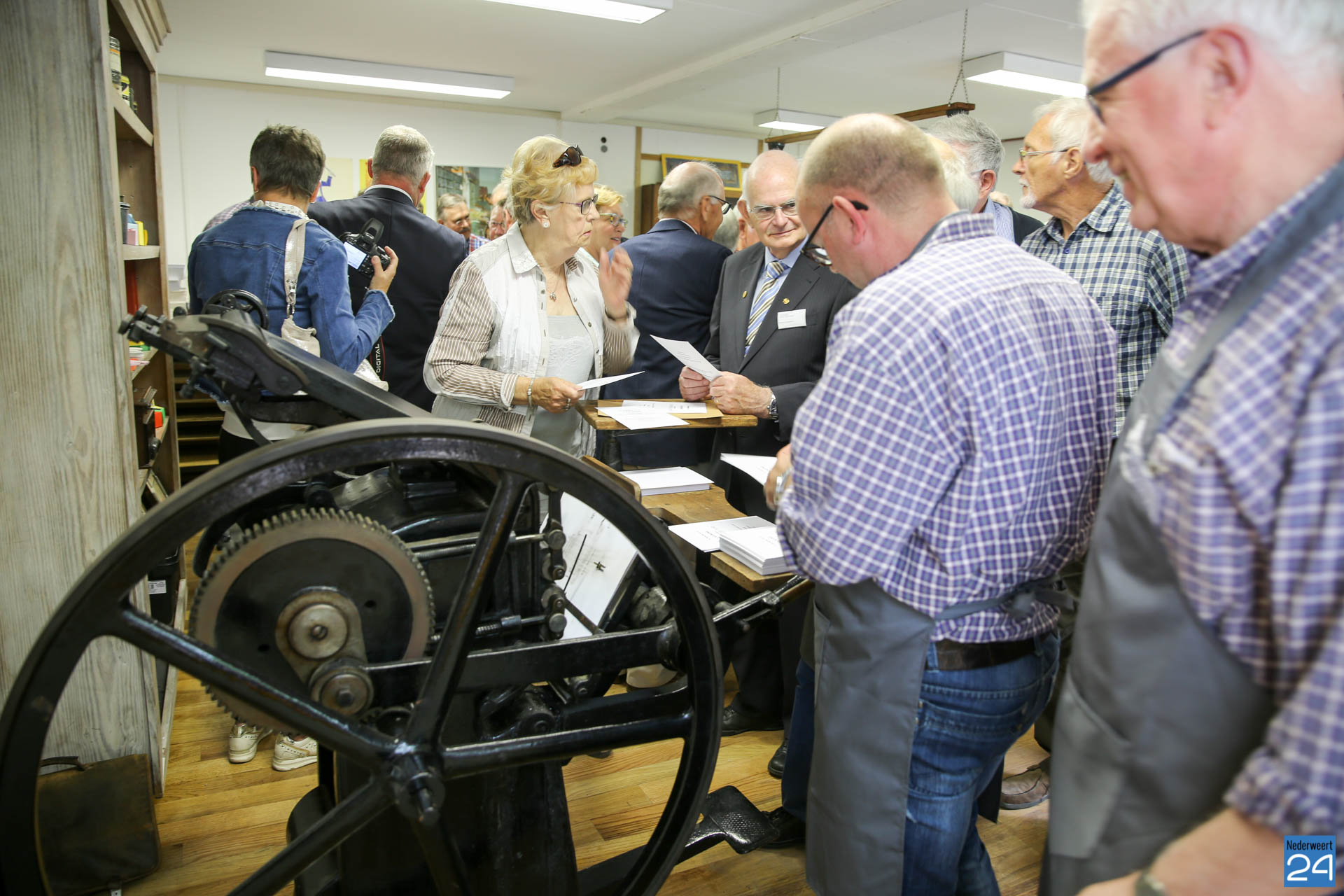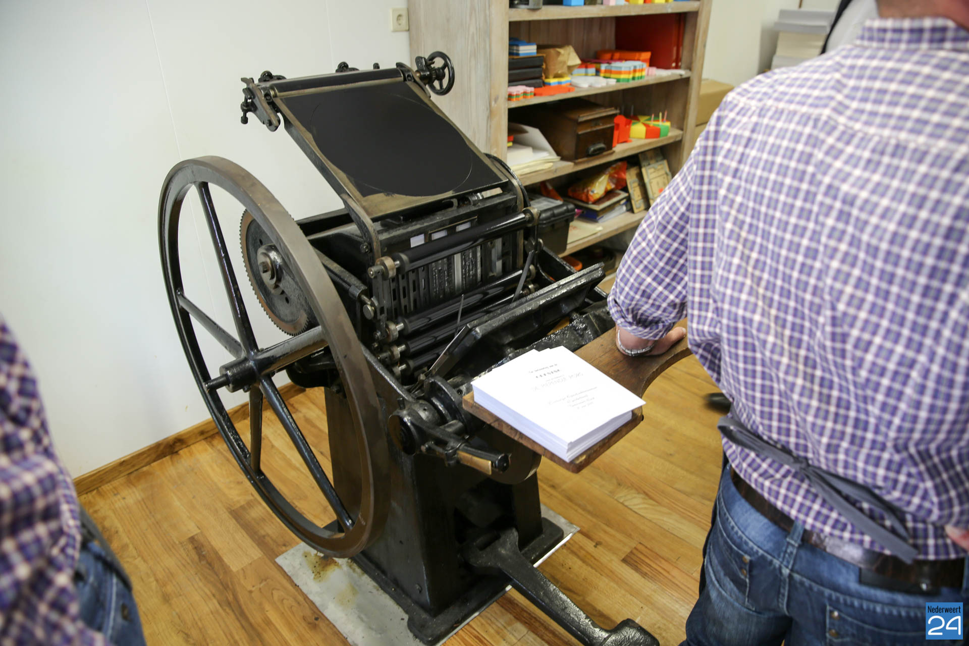 Zondagmiddag is De Piependje Pörs officieel in bedrijf gesteld in het Openluchtmuseum Eynderhoof in Nederweert-Eind. Na een woord van welkom door voorzitter Peter Willekens en een korte inleiding van Bert Lempens over het drukkersambacht was het de eer aan Harry Linskens om de drukkerij officieel te openen. Hiermee is het Limburgs Openluchtmuseum Eynderhoof een bijna verloren gegaan ambacht rijker.